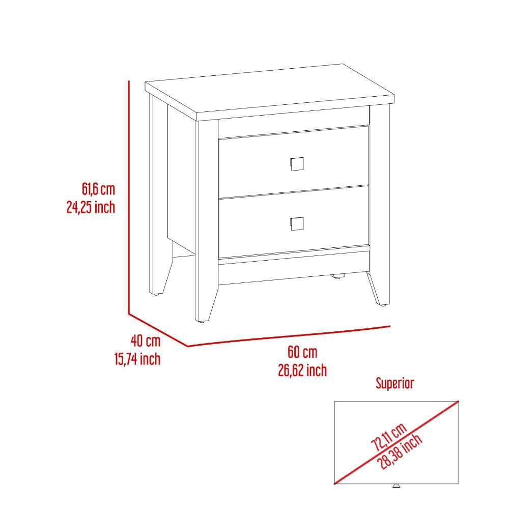 Mesa de Noche, con superficie para ubicar pertenencias, y 2 cajones organizadores.