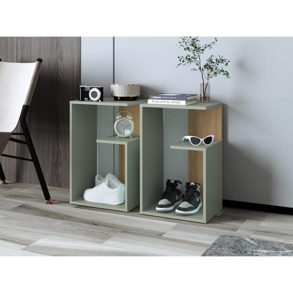 Mesa de Noche Evert, Agave y Fresno Europeo, con diseño moderno y espacio para ubicar objetos