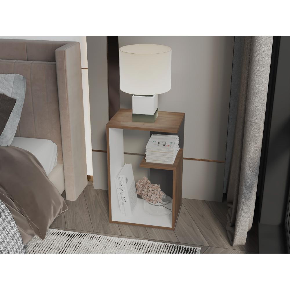 Mesa de Noche Evert, Castaño y Blanco Duqueza, con diseño moderno y espacio para ubicar objetos