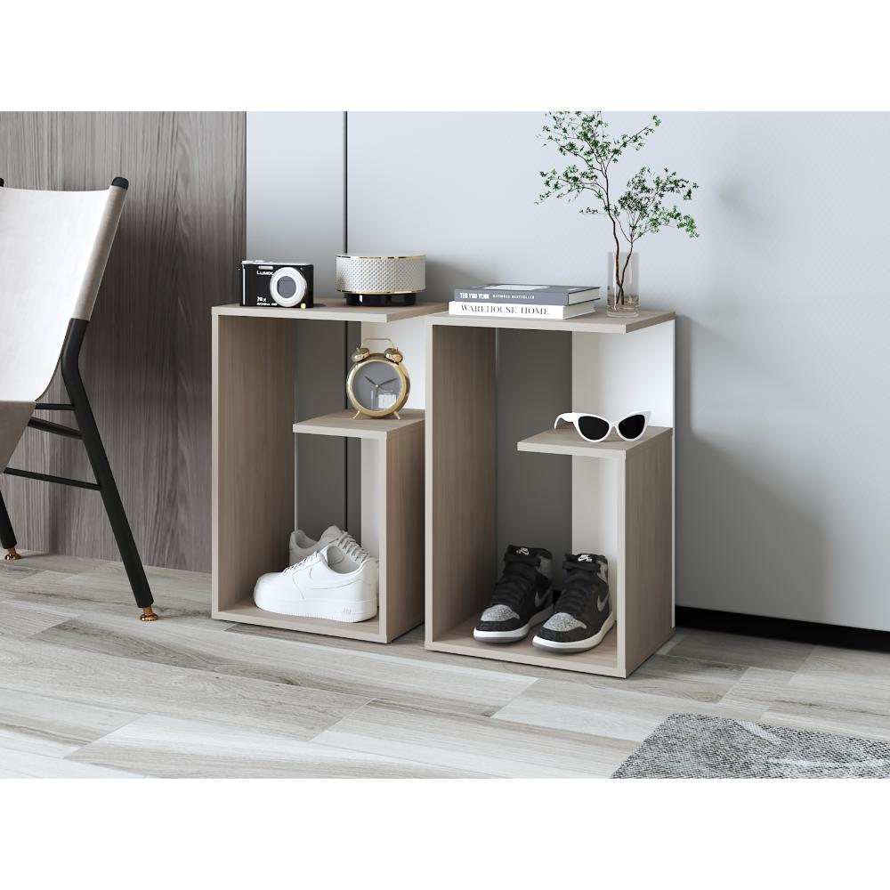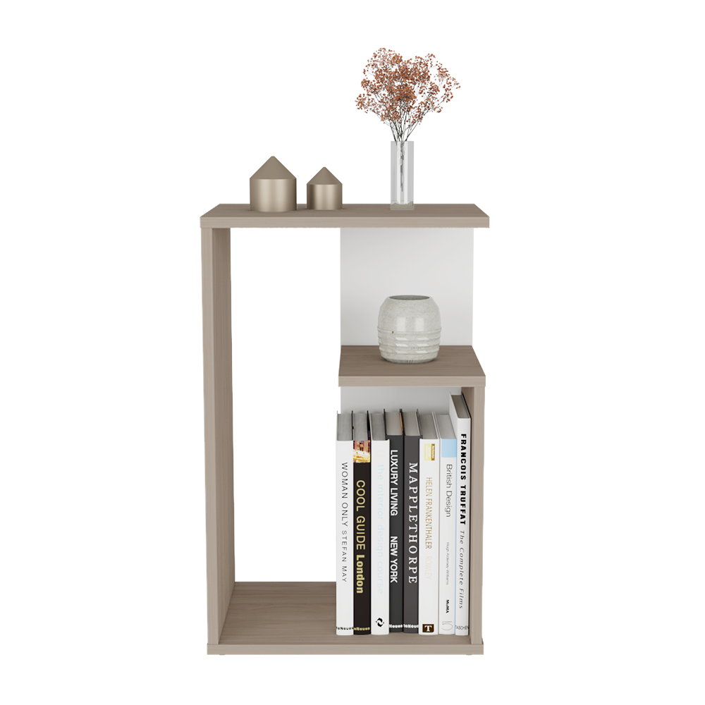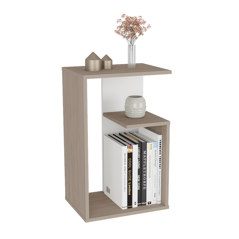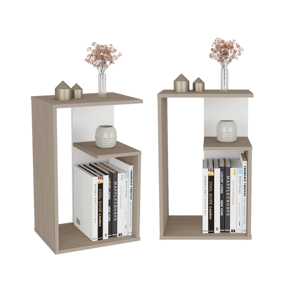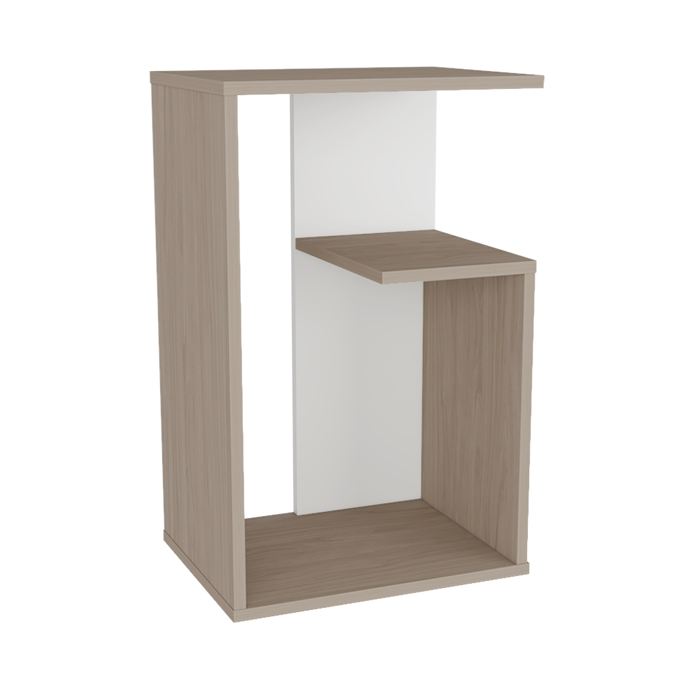 Mesa de Noche Evert, Nacar y Blanco, con diseño moderno y espacio para ubicar objetos X2