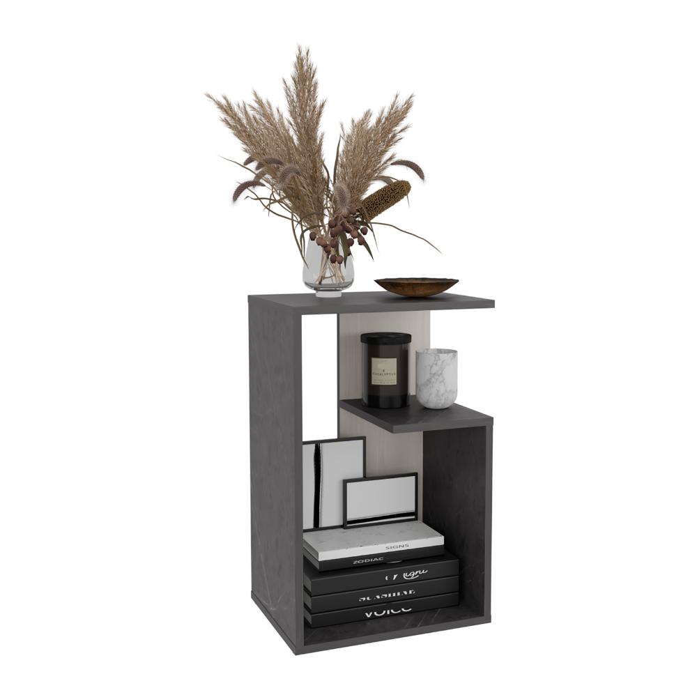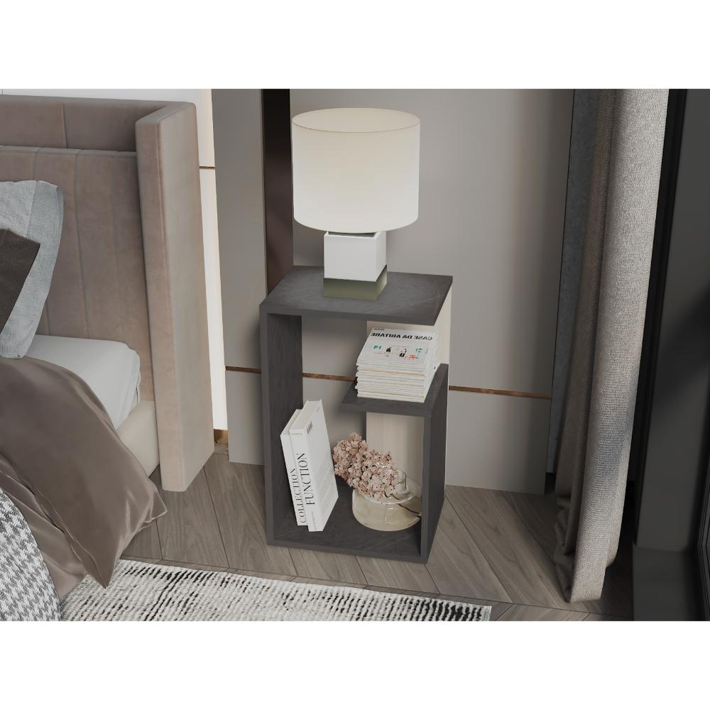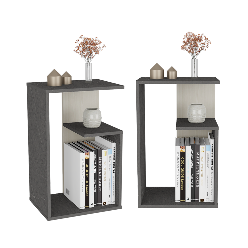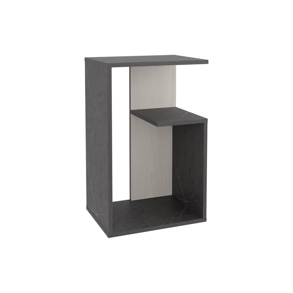 Mesa de Noche Evert, Piedra y nevado, con diseño moderno y espacio para ubicar objetos X2