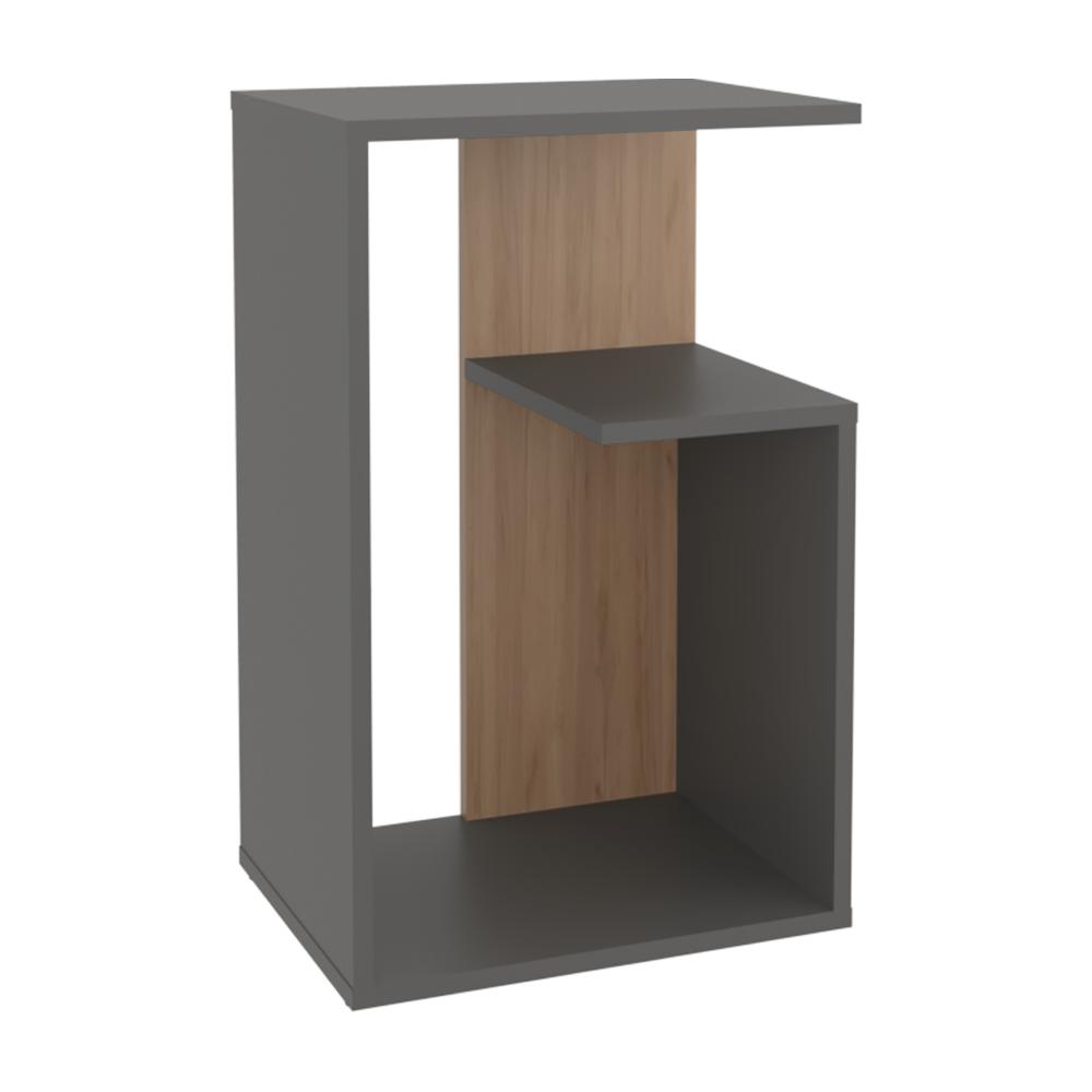 Mesa de Noche Evert, Plata Oscuro y Fresno Europeo, con diseño moderno y espacio para ubicar objetos ZF