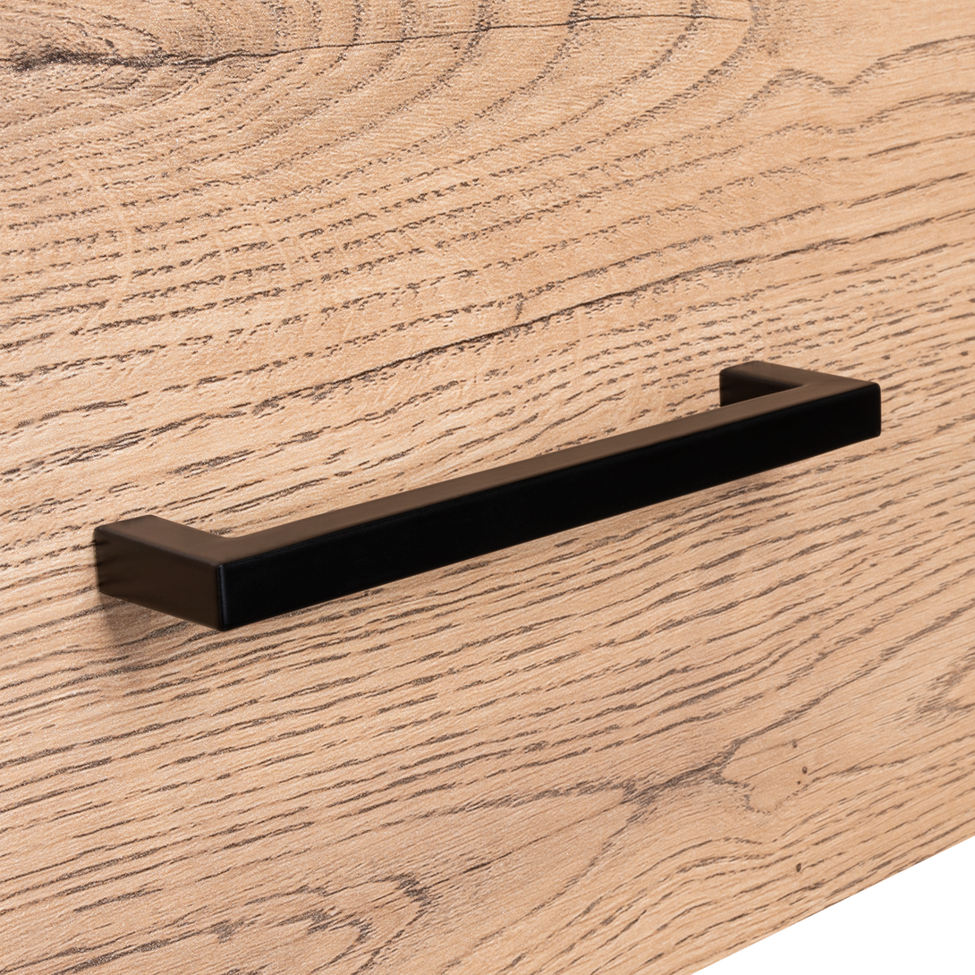 Elaborado en Madera aglomerada MDP, recubierta con láminas melamínicas de excelente calidad, en color Macadamia.