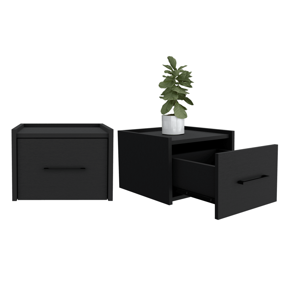 Mesa de Noche Flotante, con espacio para colocar objetos decorativos, diseño moderno, un cajón.