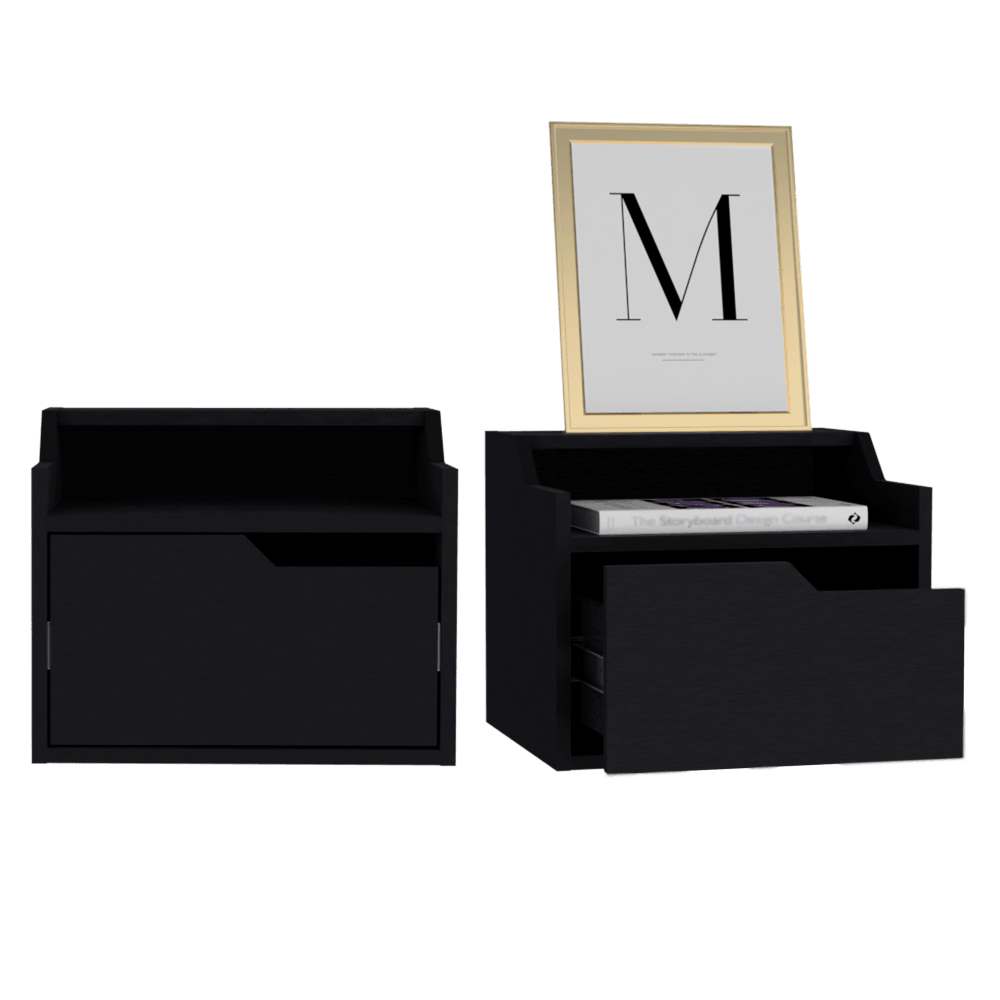 Mesa de Noche Flotante, con espacio para colocar objetos decorativos, diseño moderno y un cajón.