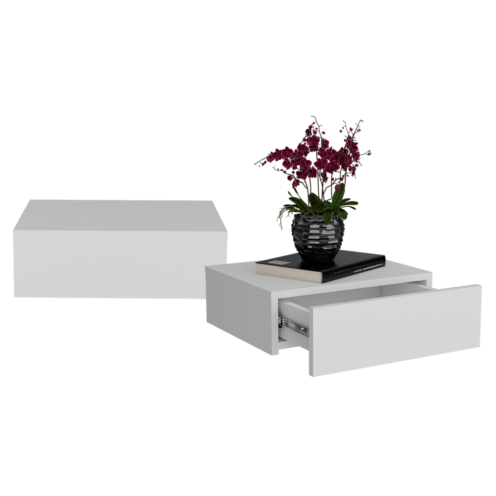 Mesa de Noche Flotante, de fácil instalación y armado, un cajón, diseño minimalista, superficie para ubicar objetos.