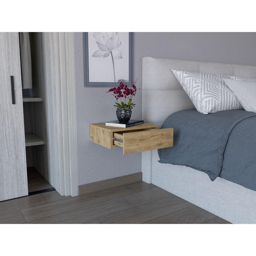 Mesa de Noche Flotante, de fácil instalación y armado, un cajón, diseño minimalista, superficie para ubicar objetos.