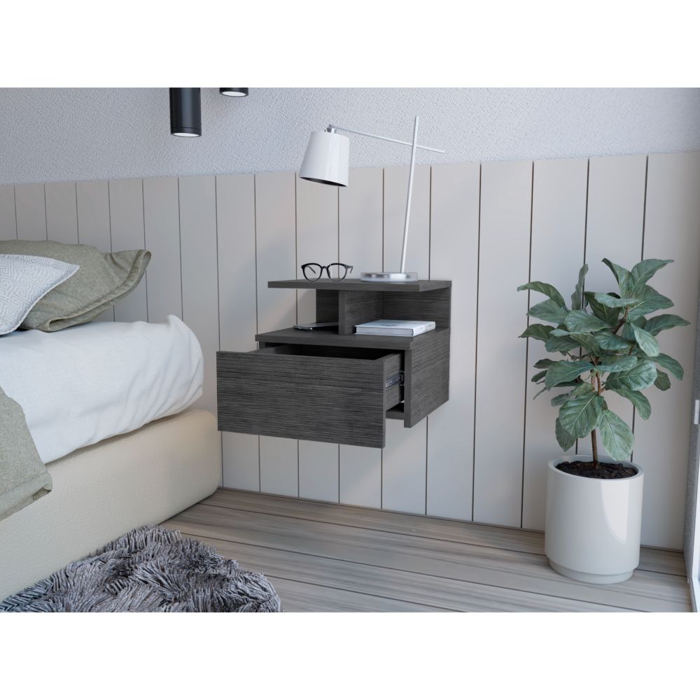 Mesa de Noche Flotante Nube, Gris, con un Cajón y División de dos Entrepaños ZF