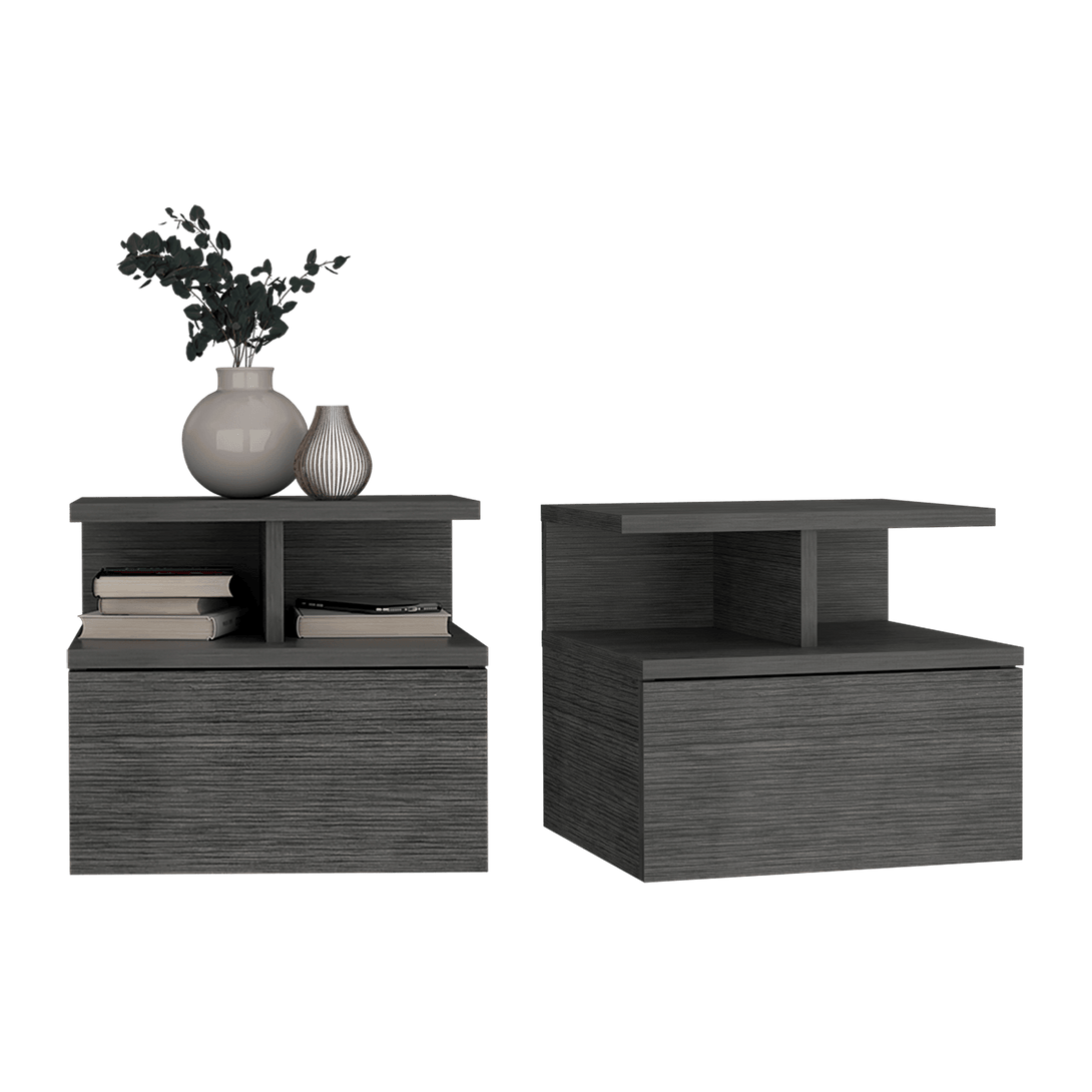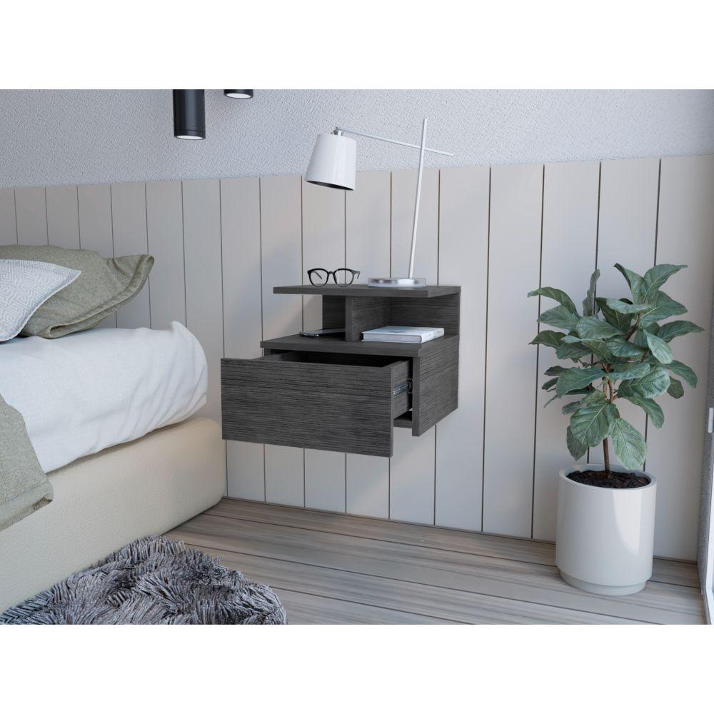Mesa de Noche Flotante, con un cajón, diseño moderno, y division de dos entrepaños