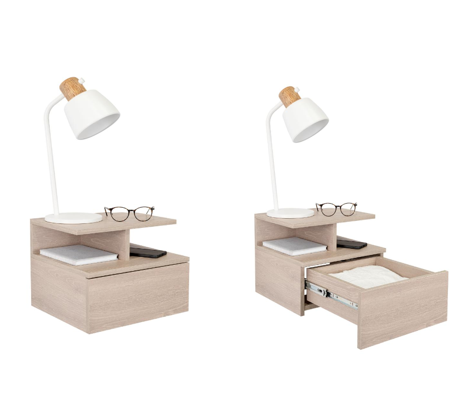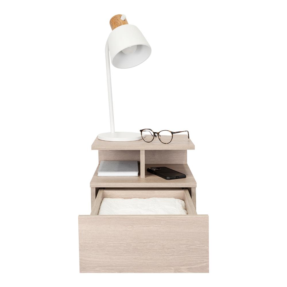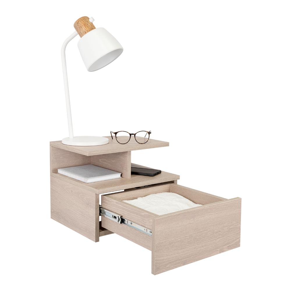Mesa de Noche Flotante Nube, Humo, con un Cajón y División de dos Entrepaños X2