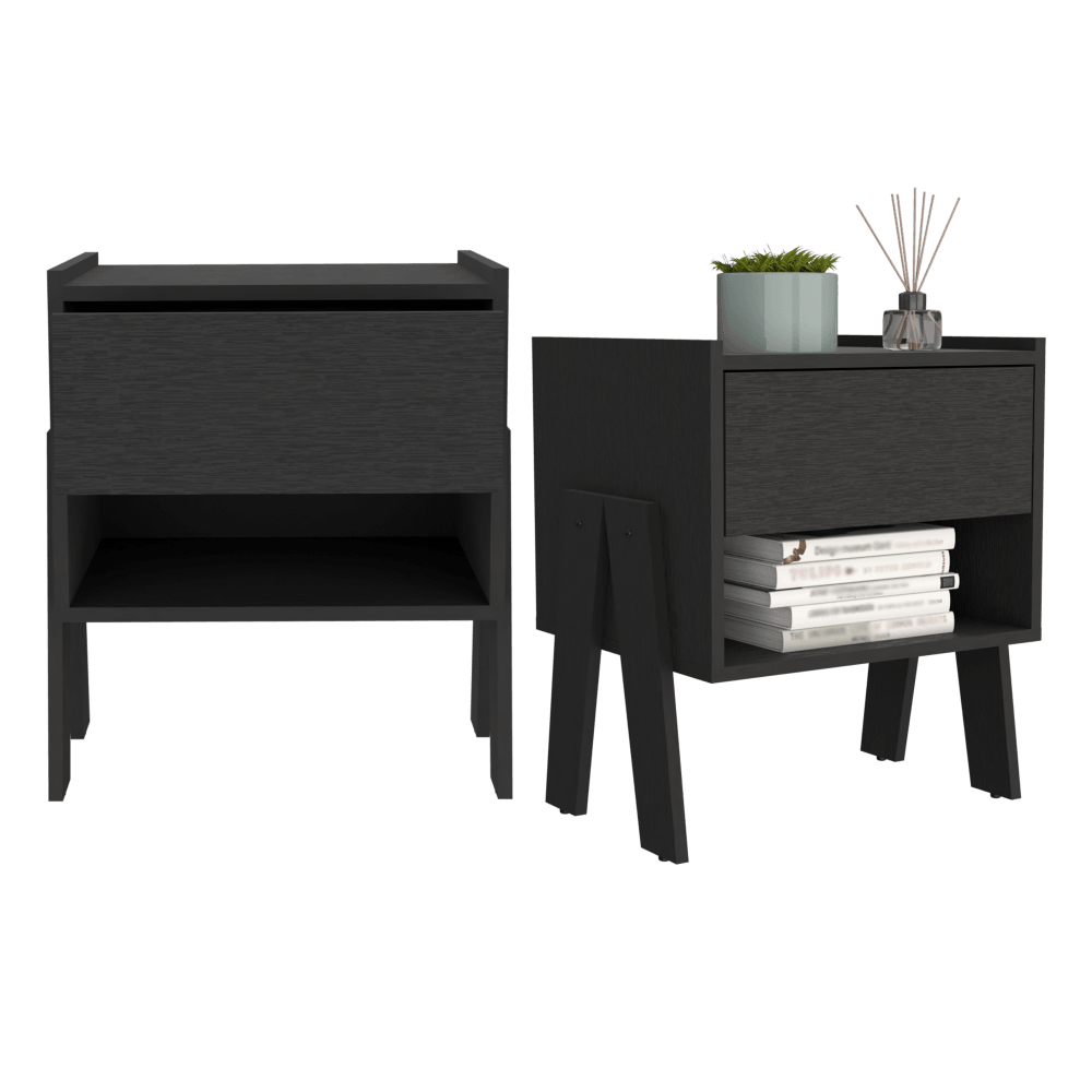 Mesa de Noche Joy,Wengue, Con Espacio Para Colocar Objetos X2