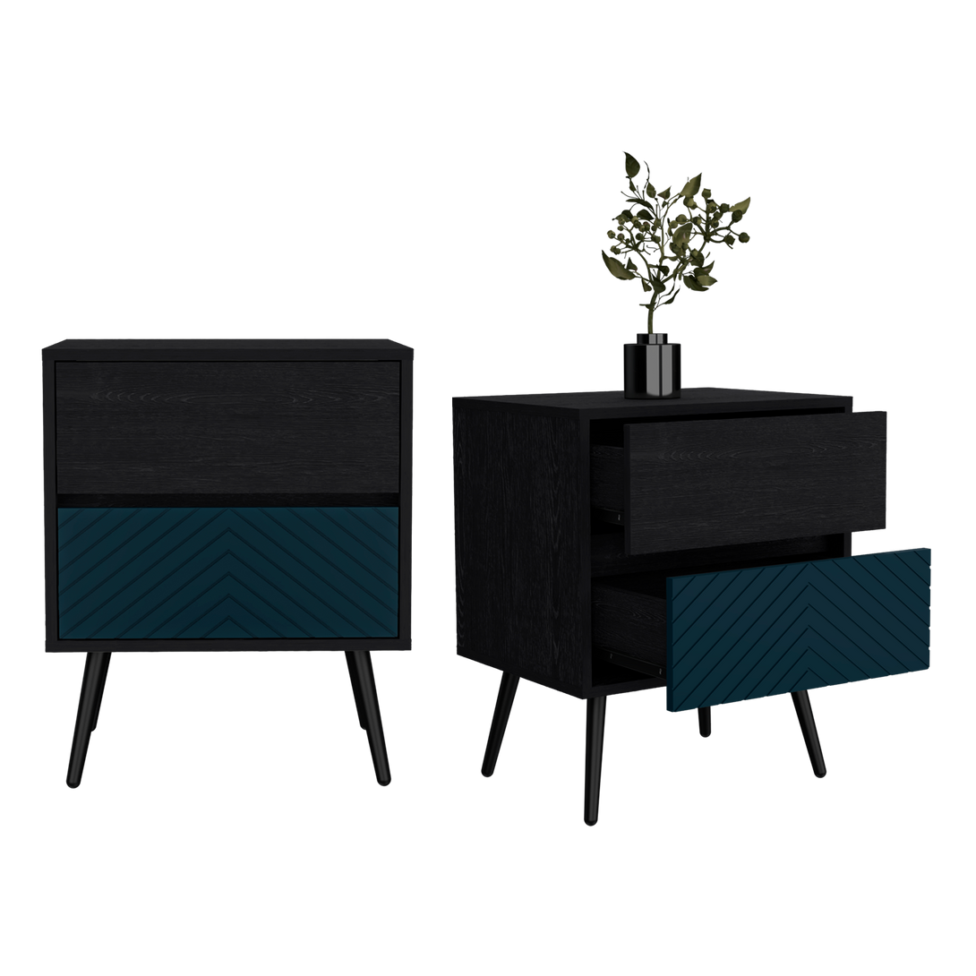Mesa de Noche Lutso, Negro y Azul, con patas de madera X2
