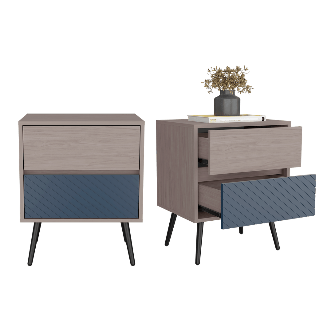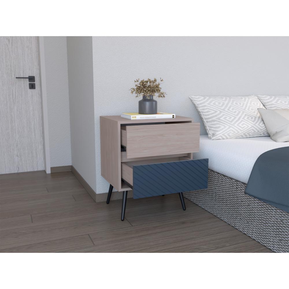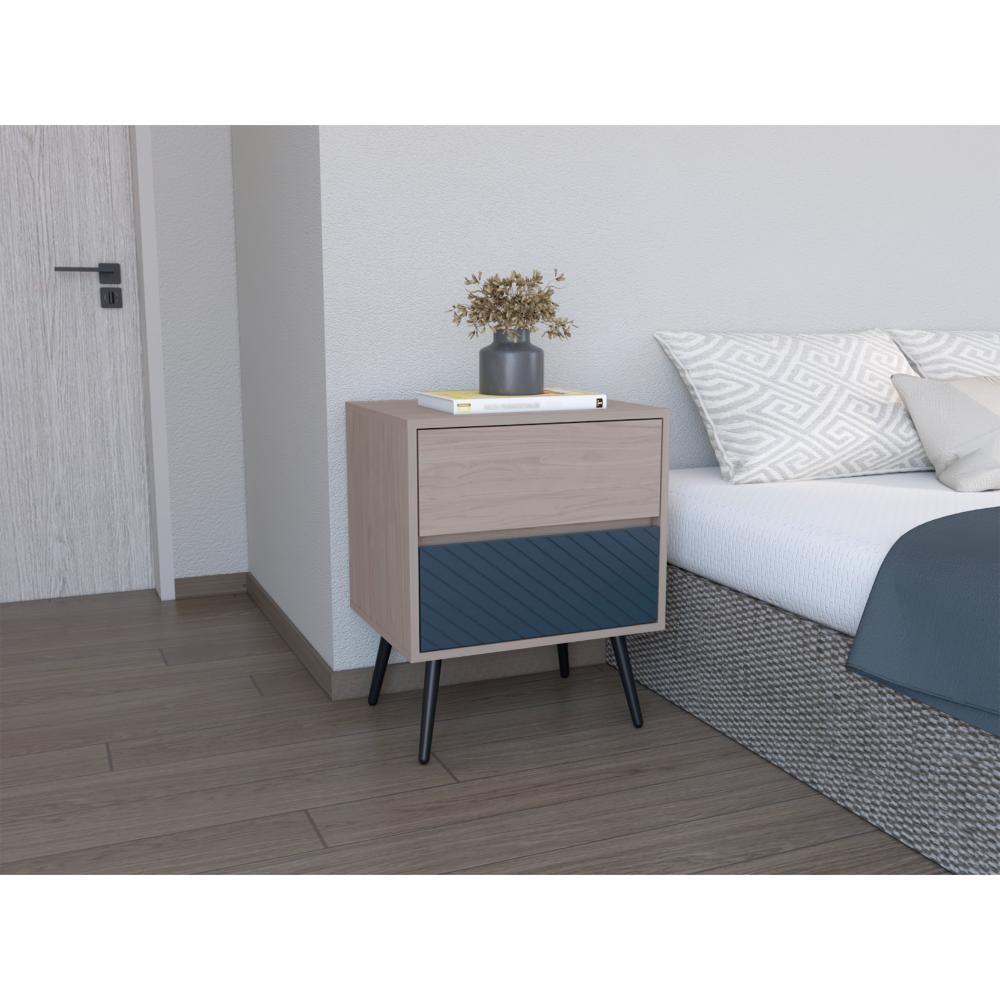 Mesa de Noche Lyle, Nacar y Azul, con patas de madera X2