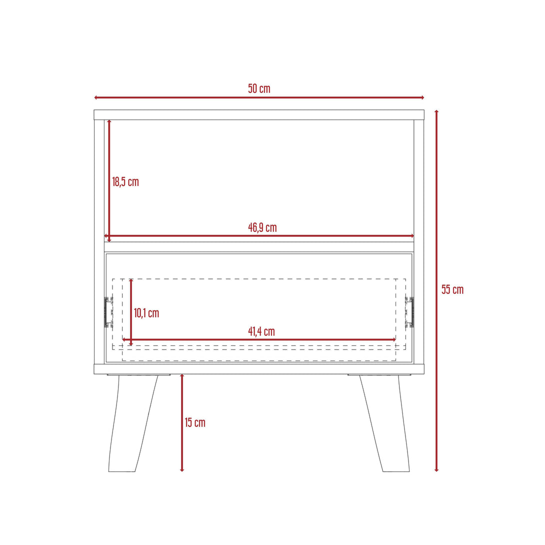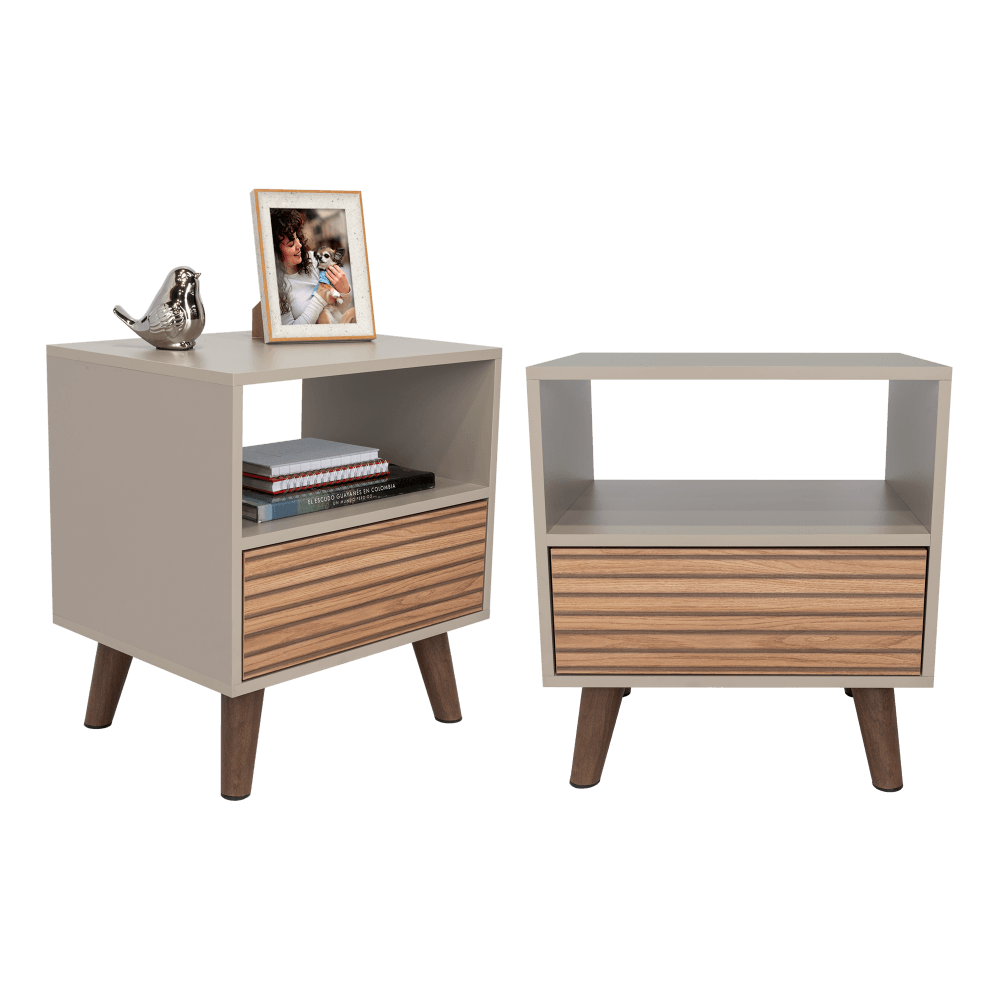 Mesa de Noche, Mirabella, Cocoa, con un Cajón y Amplio espacio para Almacenar Objetos X2