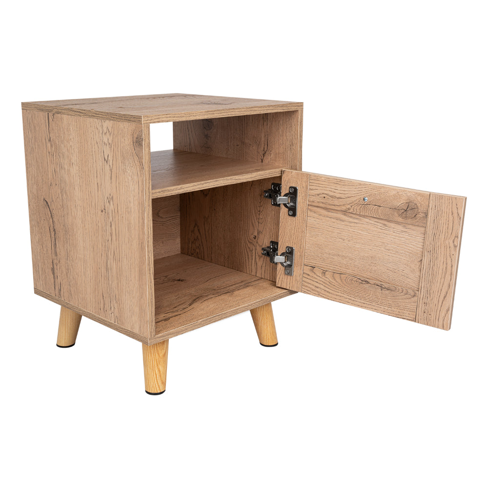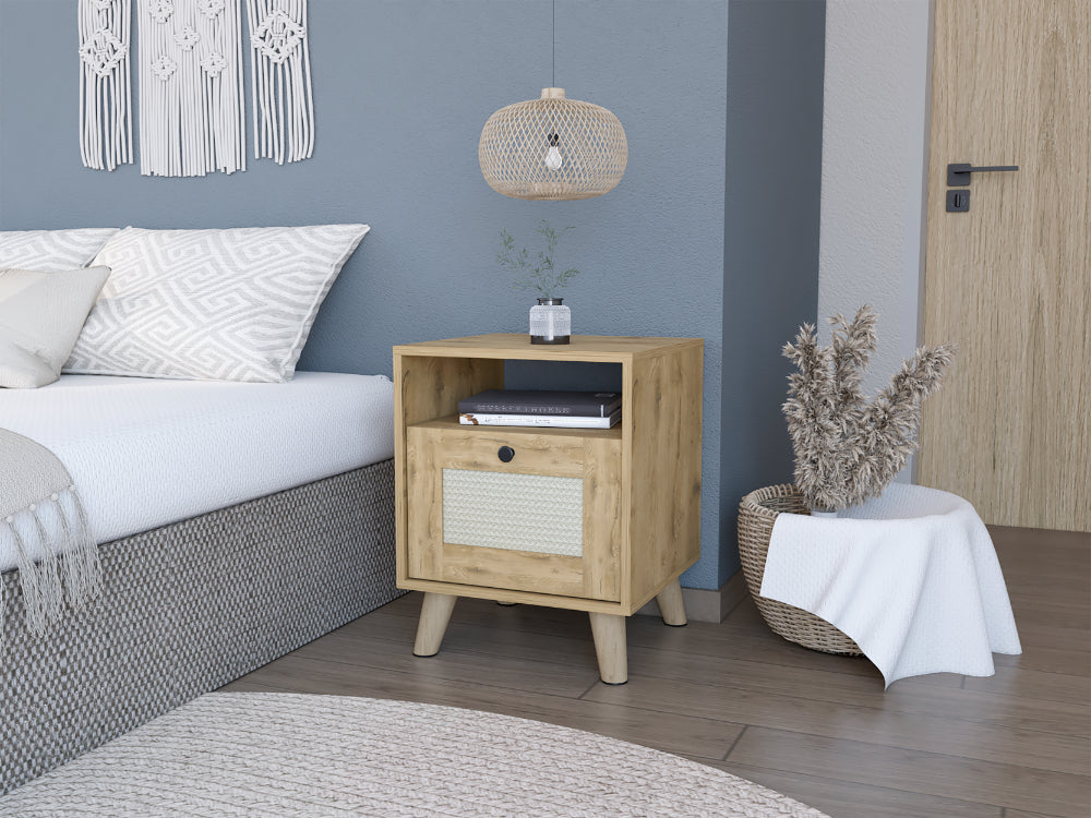 Mesa de Noche Natura, Macadamia, con espacio para colocar objetos decorativos
