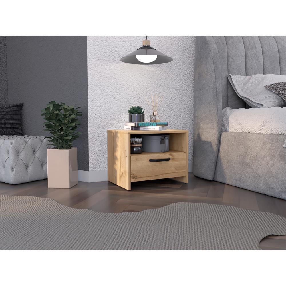 Mesa de Noche Oliveri, Café Claro, con un cajón
