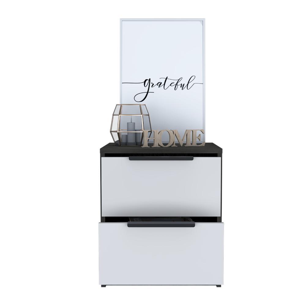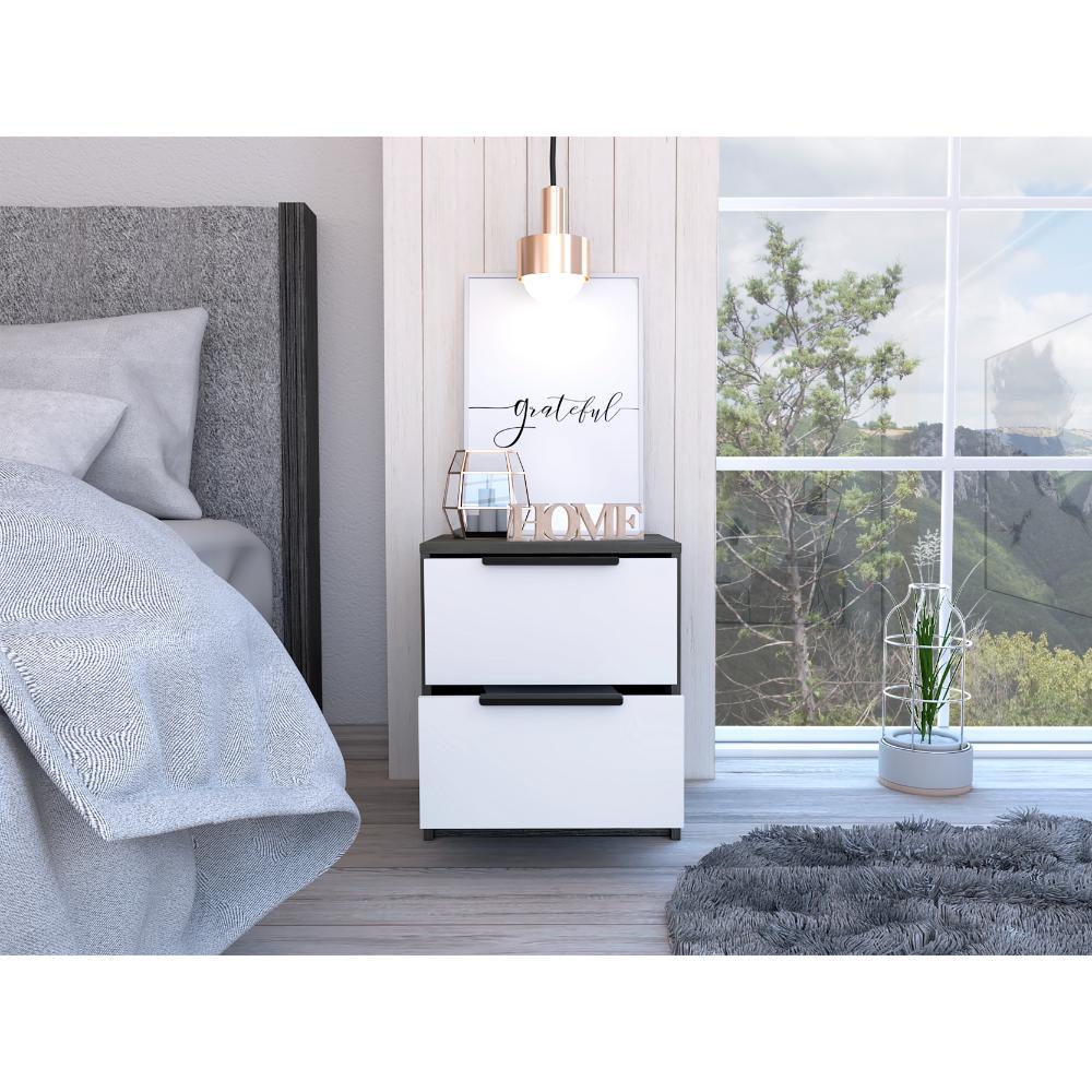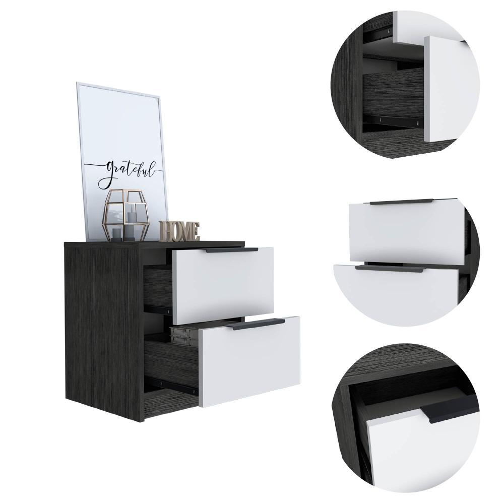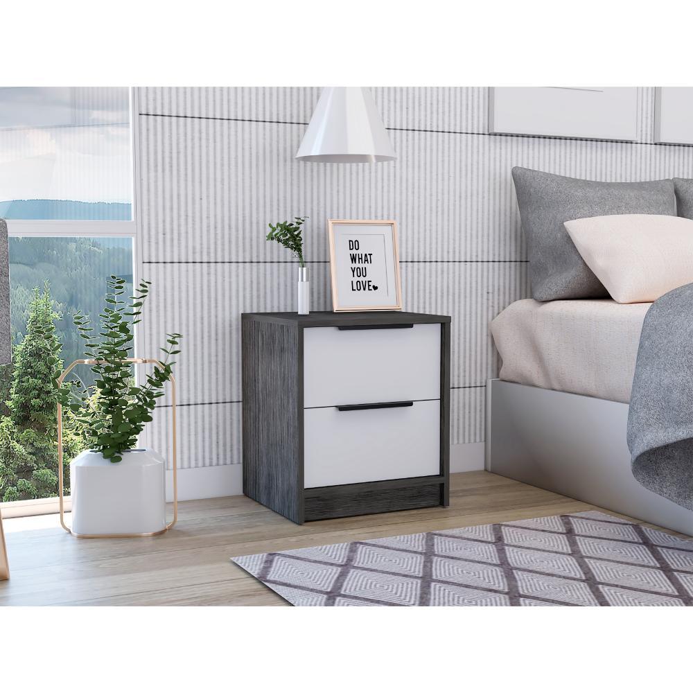 Mesa de Noche Wesley, Gris y Blanco, con Dos Cajones Organizadores ZF