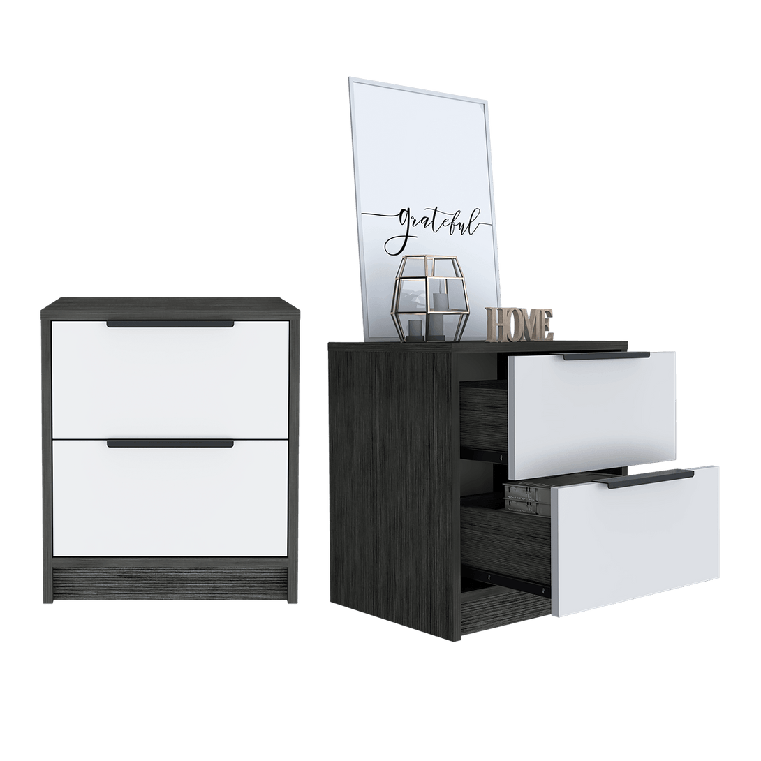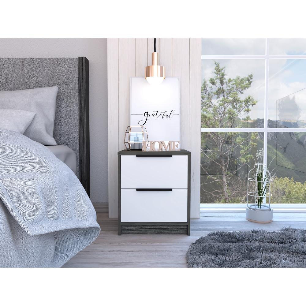 Mesa de Noche Wesley, Gris y Blanco, con Dos Cajones Organizadores ZF X2