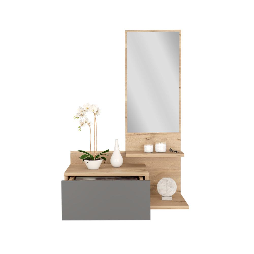 Mesa Flotante Recibidor Viena, Café Claro y Plata Oscuro, con un Cajón