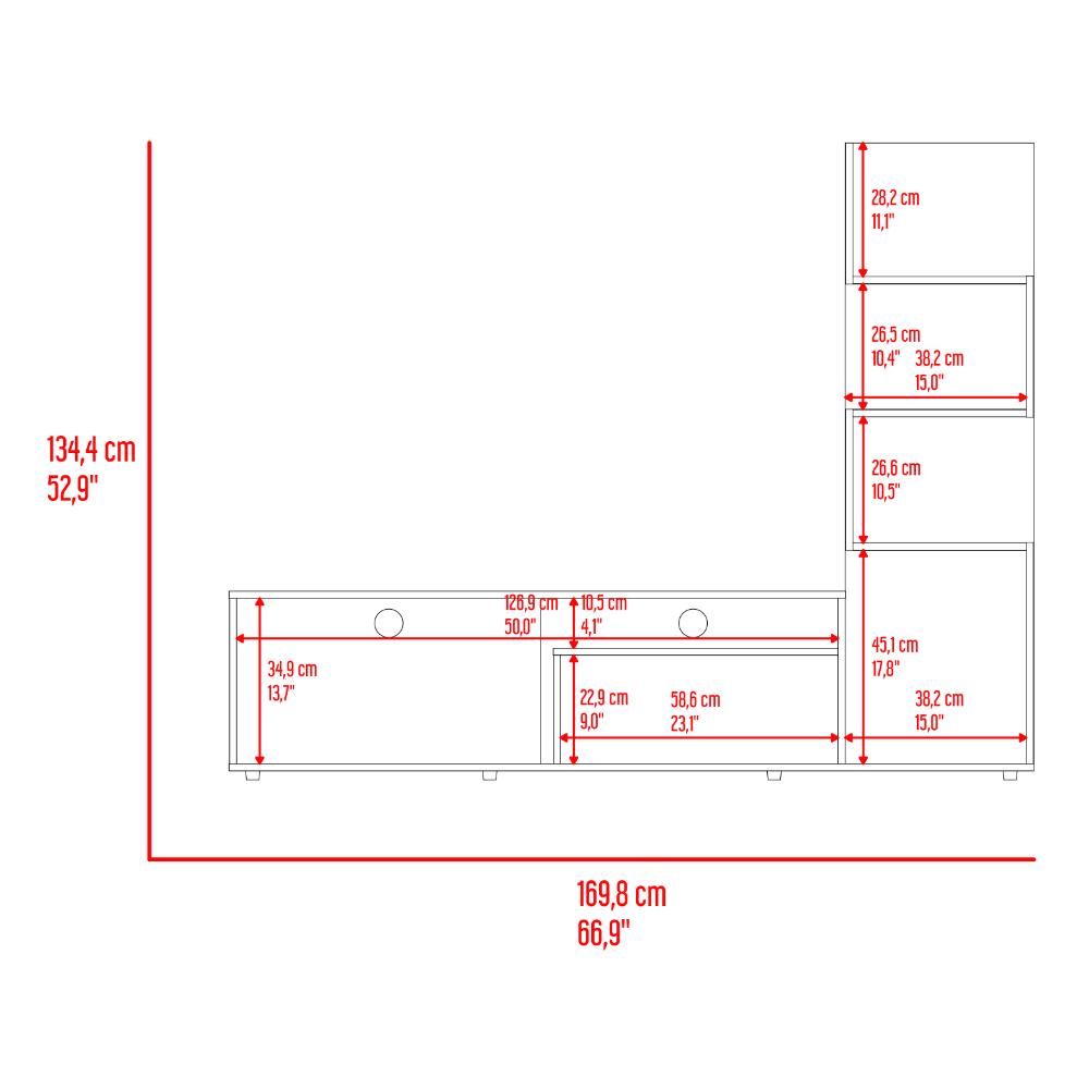 Además de soportar el TV, nuestras mesas las puedes usar para guardar y decorar tus espacios con libros, revistas, consolas, equipos de sonido, etc. Todo el entretenimiento en un solo lugar.