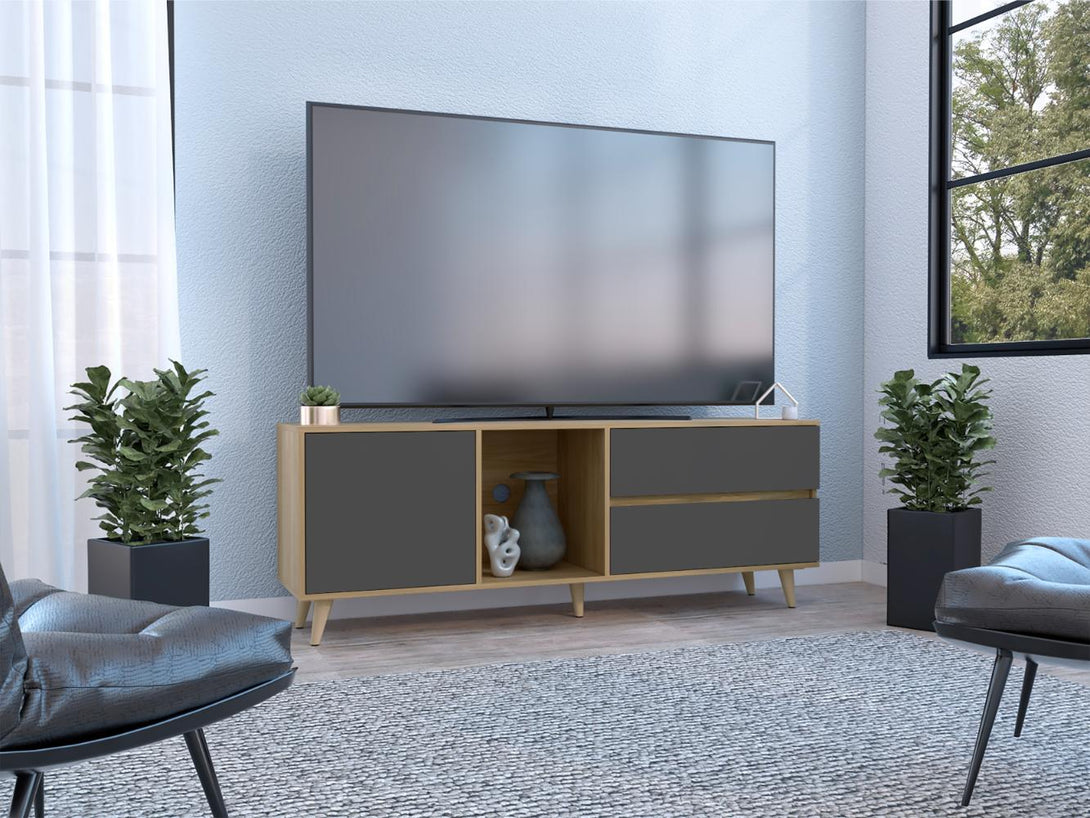 Mesa Para Tv Nashira, Fresno Europeo y Plata Oscuro, con Espacio Para Televisor de Hasta 65 Pulgadas