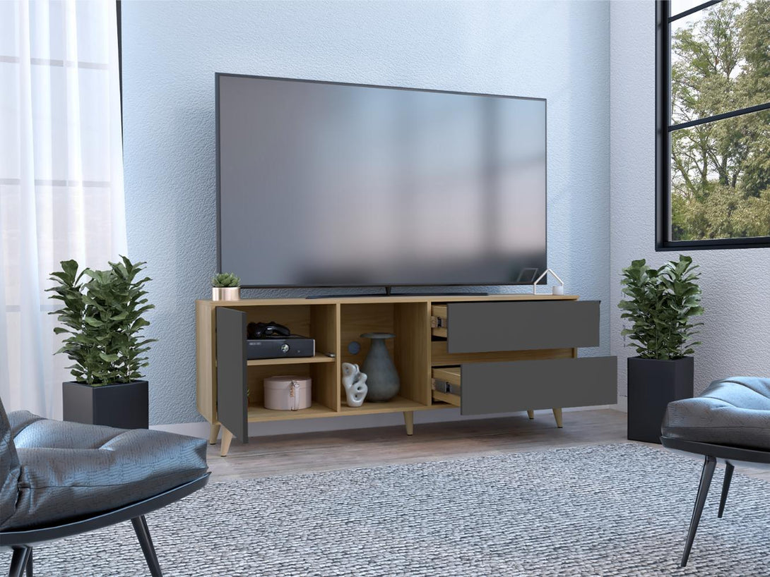 Además de soportar el TV, nuestras mesas las puedes usar para guardar y decorar tus espacios con libros, revistas, consolas, equipos de sonido, etc. Todo el entretenimiento en un solo lugar.