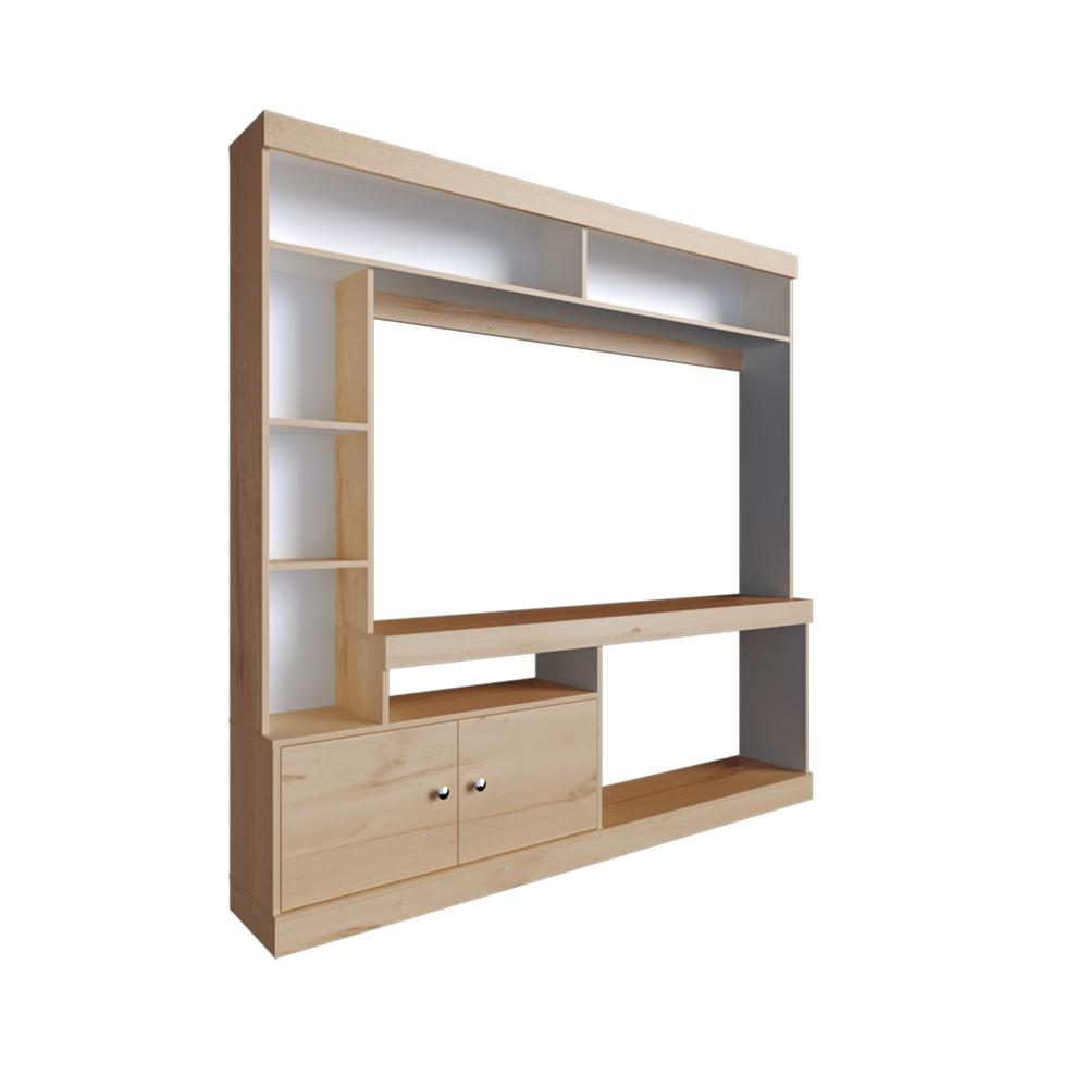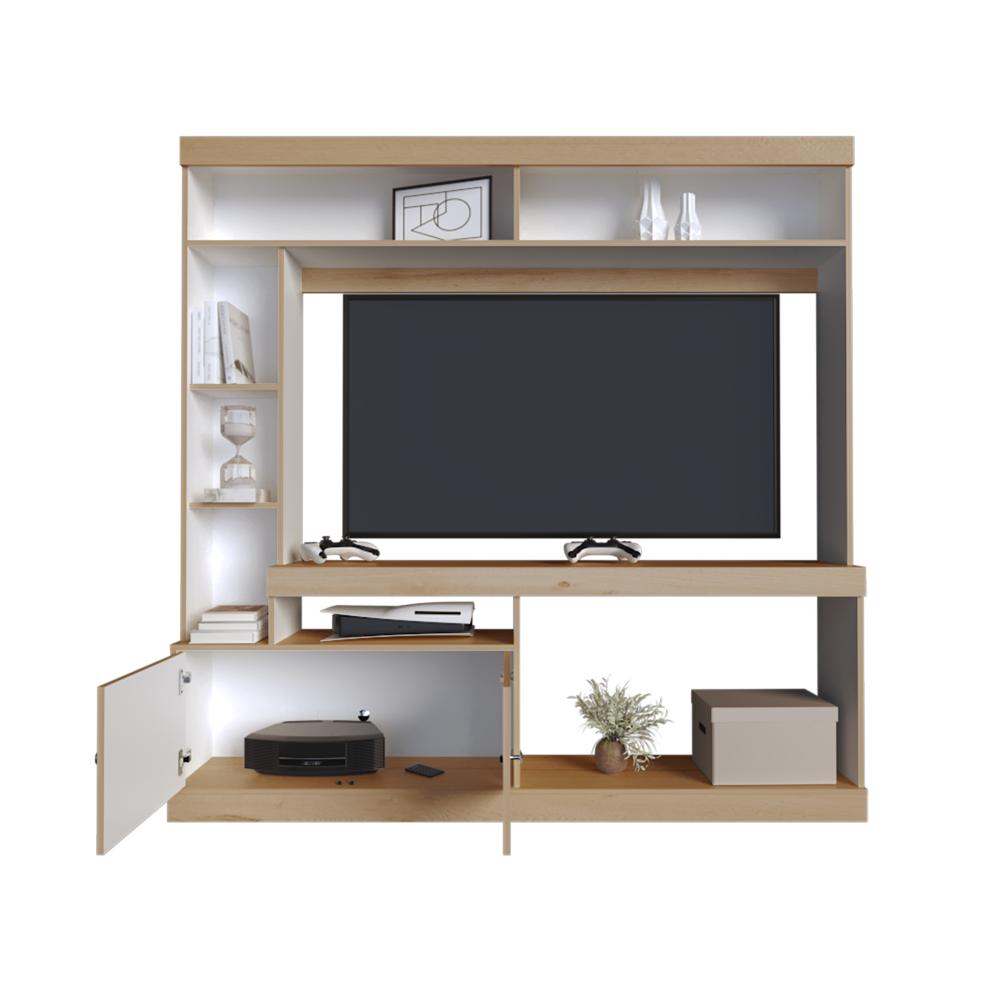 Mesa Para Tv Roy, Café Claro y Blanco, con Espacio Para Televisor de 55 Pulgadas