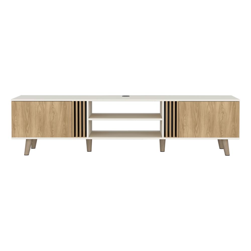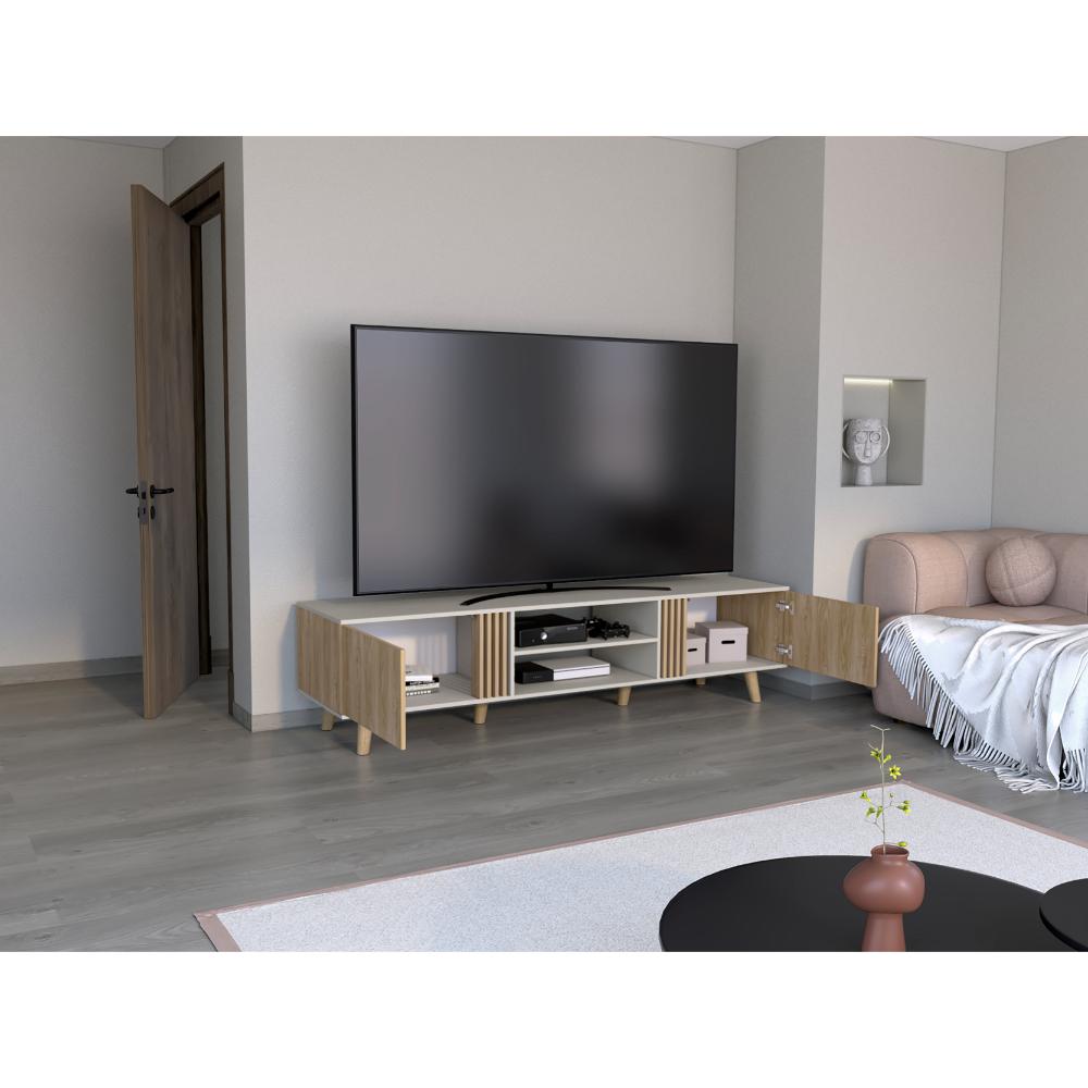 Mesa para TV con dos puertas, diseño moderno, puertas apertura push, para tv de 75 pulgadas.