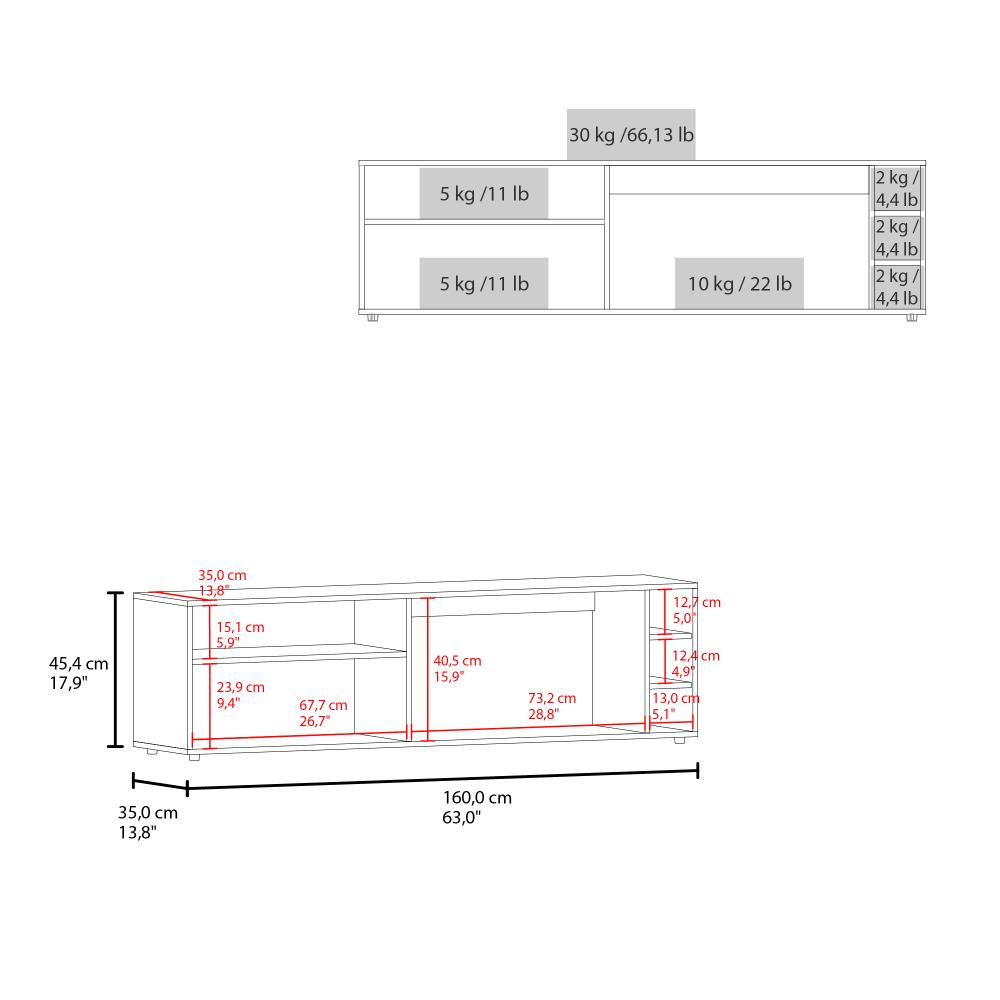 Mesa para TV Sunta, Blanco, con amplios espacios para ubicar dispositivos de entretenimiento 70" ZF