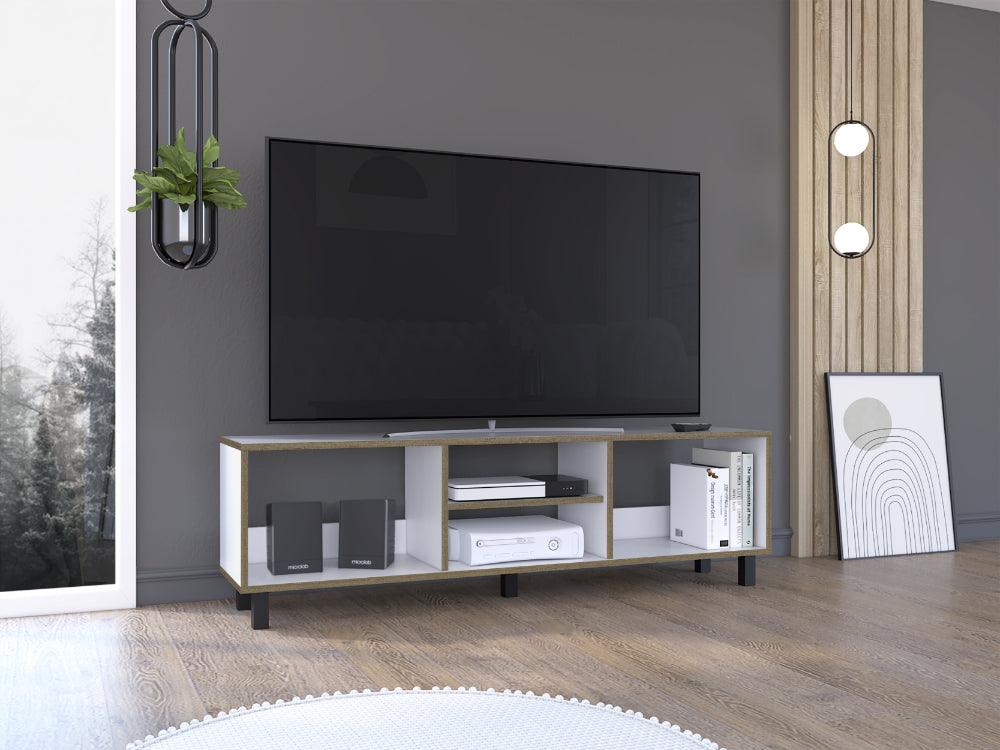Mesa Para Tv Tunez, Blanco y Café Oscuro, Para Televisor Hasta 70 Pulgadas