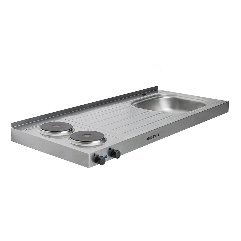 Mesón Eléctrico En Acero Inoxidable, Con Lavaplatos Derecho de 120 cm