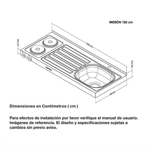Mesón Eléctrico En Acero Inoxidable, Con Lavaplatos Izquierdo de 120 cm