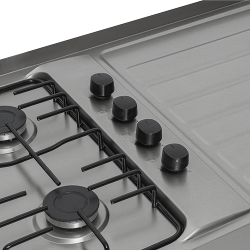 - Perillas con diseño ergonómico y acabado negro mate, ubicadas en la parte superior para facilitar su manipulación y optimizar la zona de cocción.