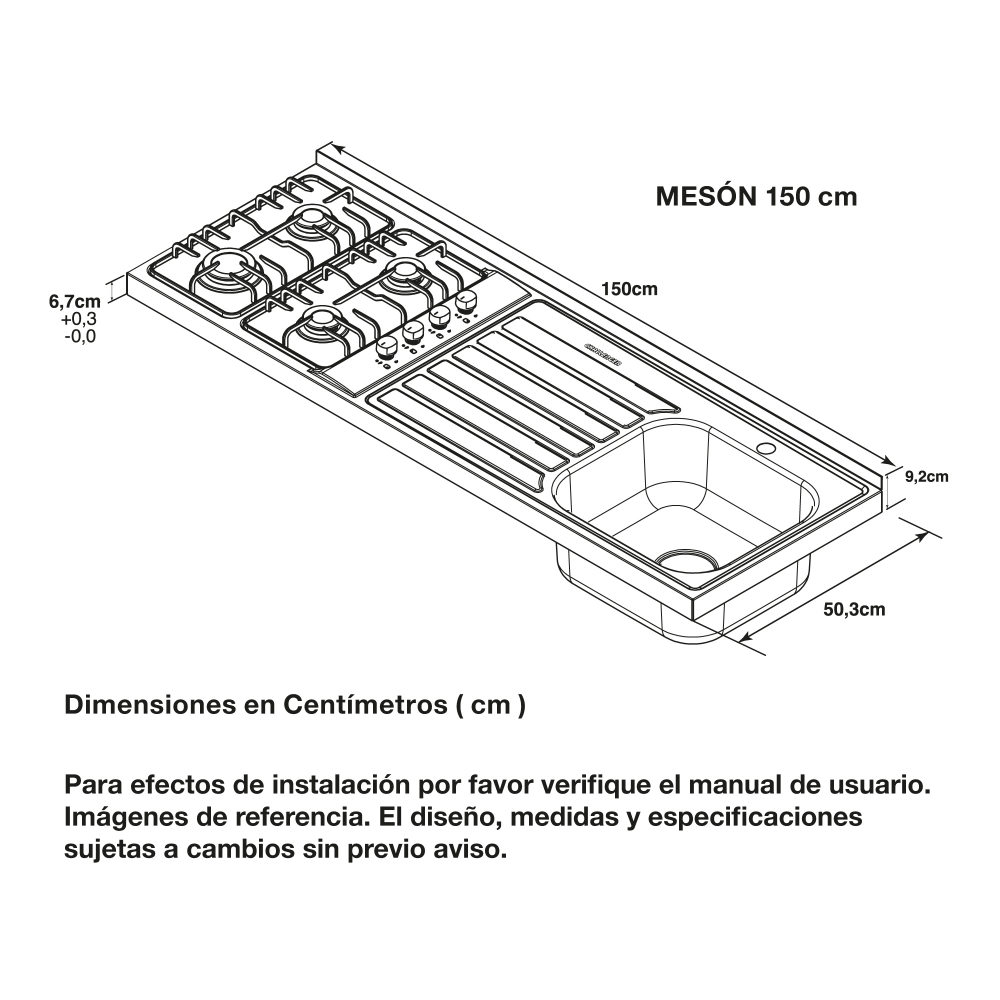Mesón En Acero Inoxidable Challenger, Lavaplatos Derecho de 150 cm