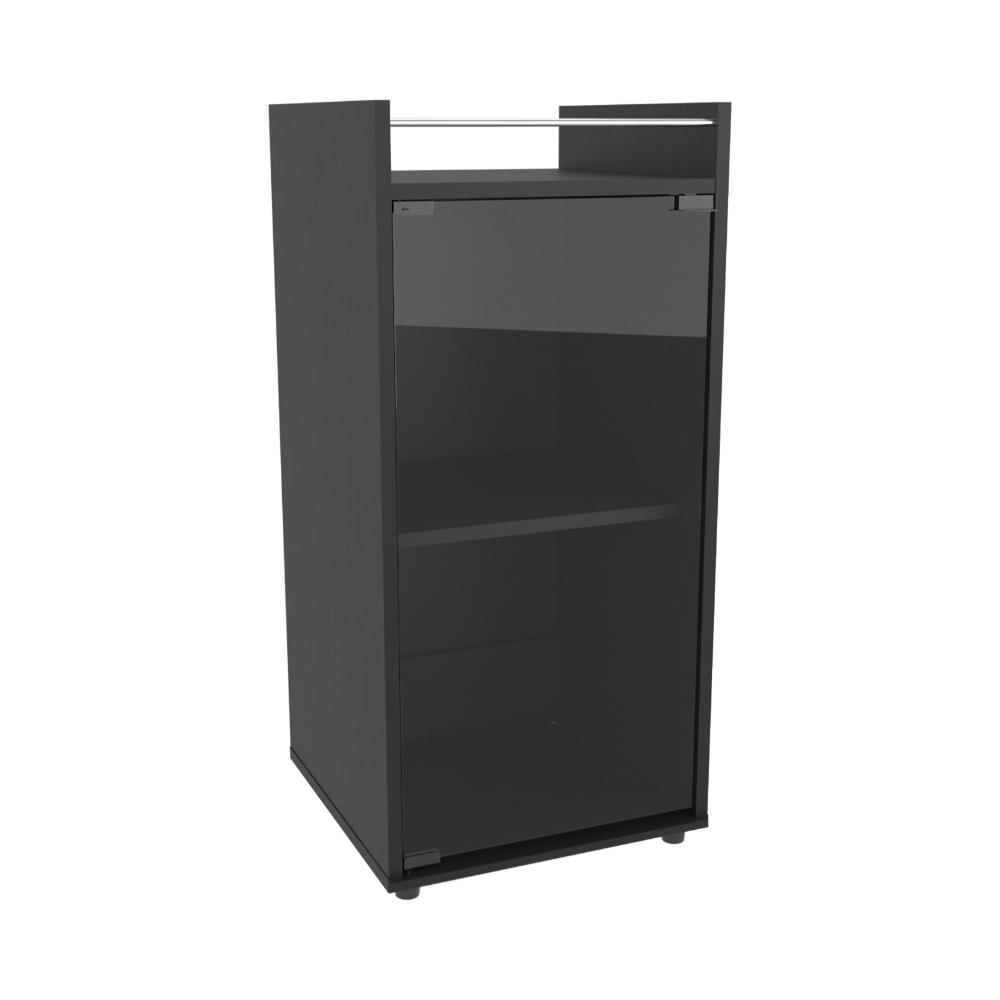 Minibar, con espacio para botellas de vino y copas, una puerta de vidrio y de facil instalación.