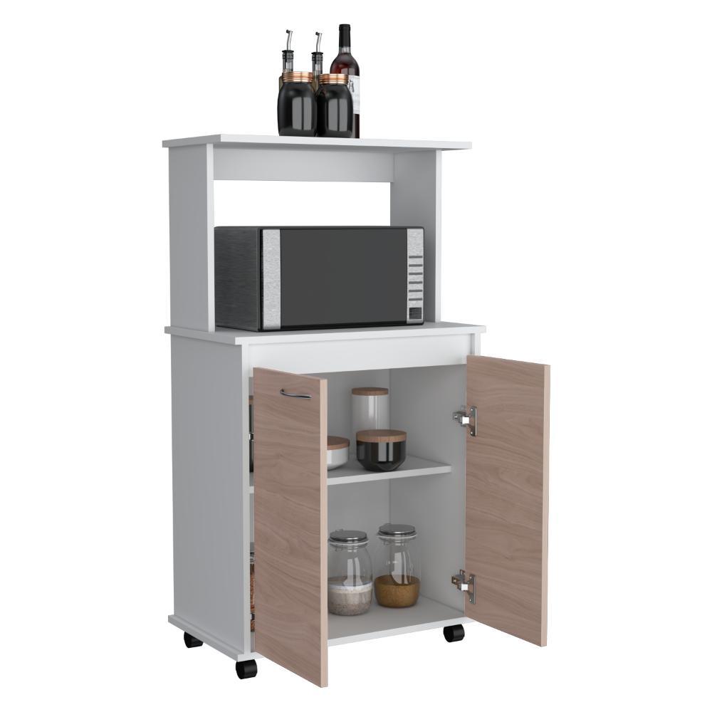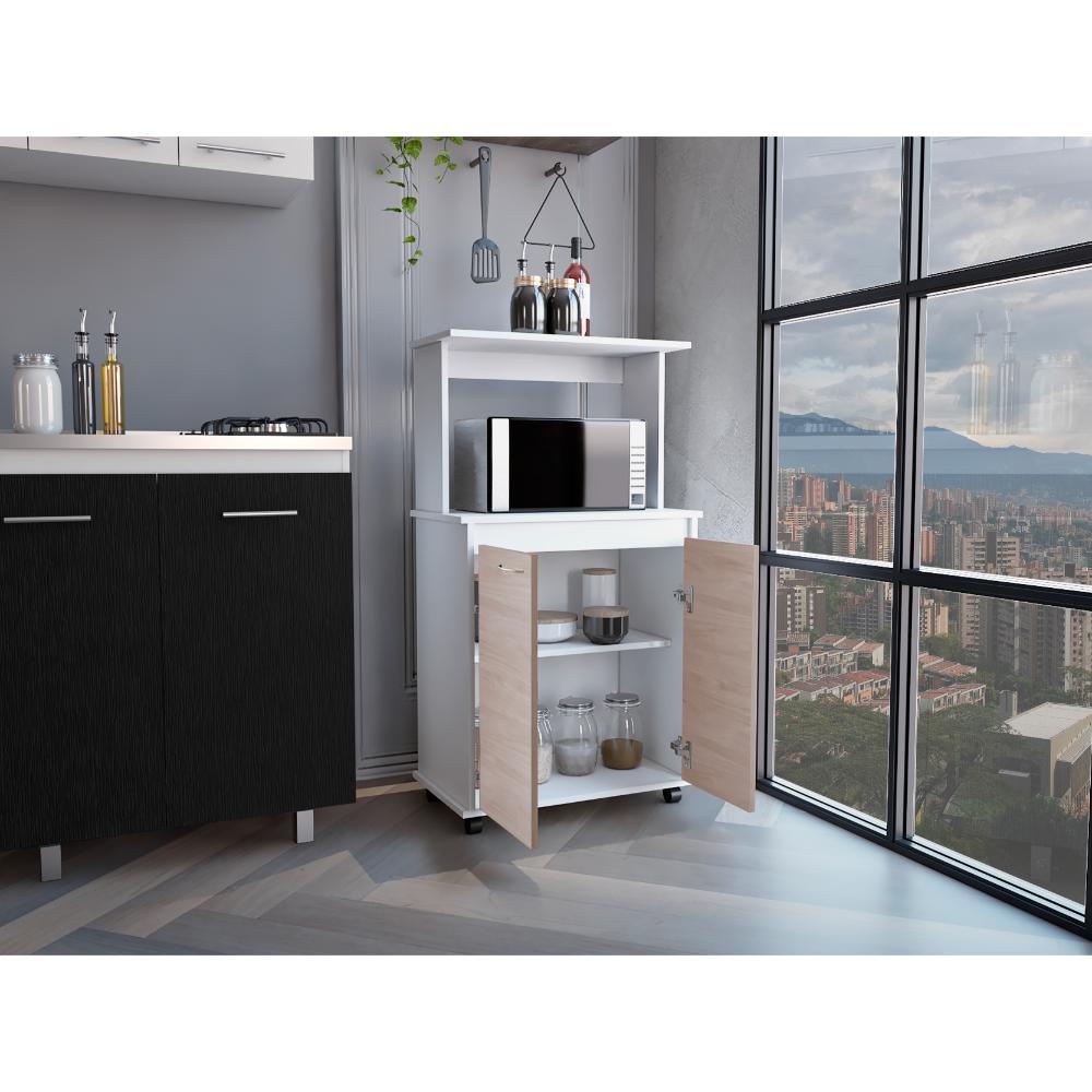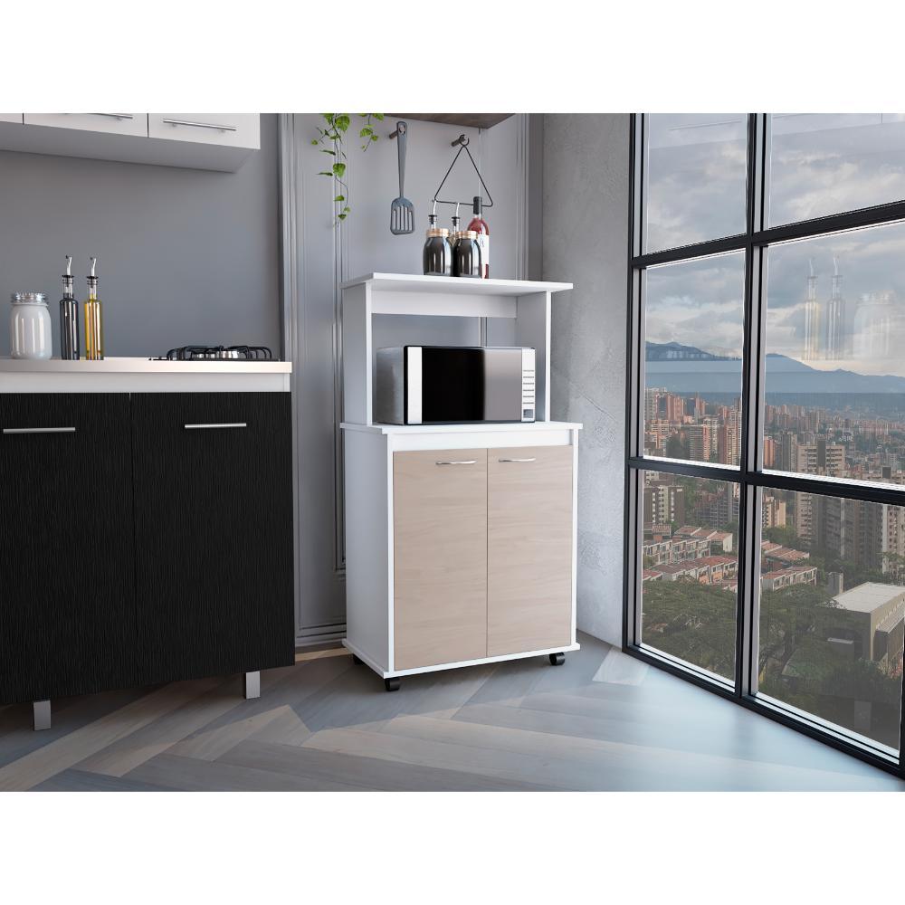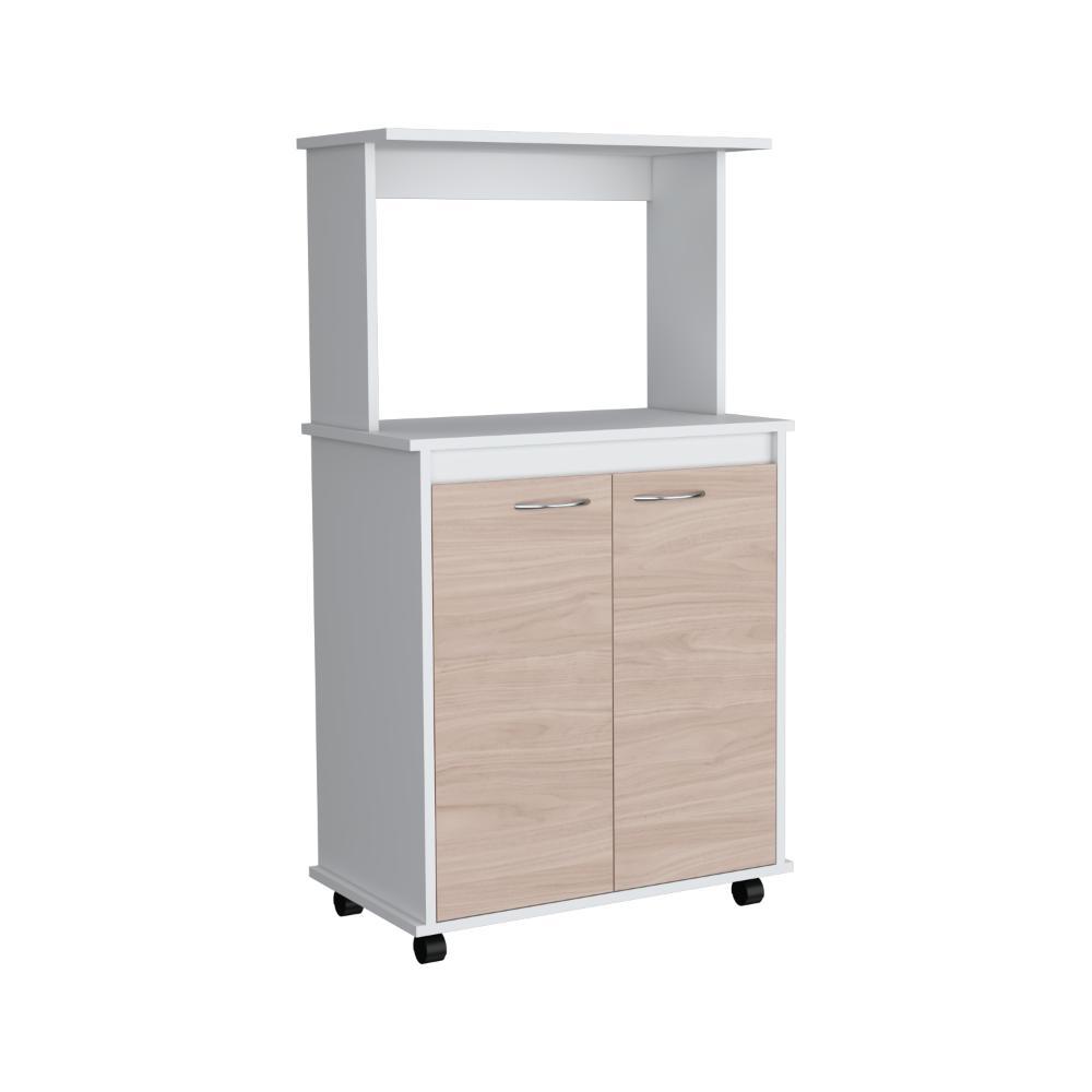 Módulo Microondas Bajo Italia, Blanco Duqueza y Nacar, Con dos puertas abatibles y rodachines