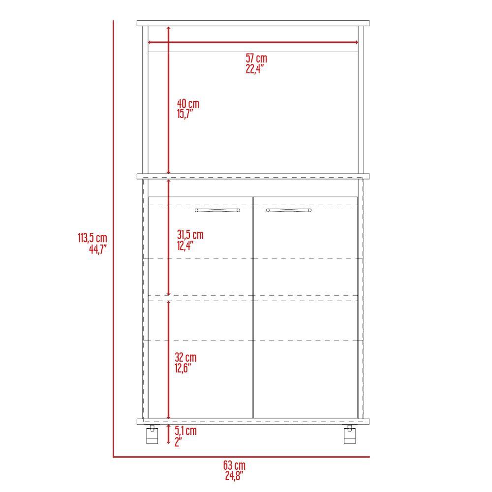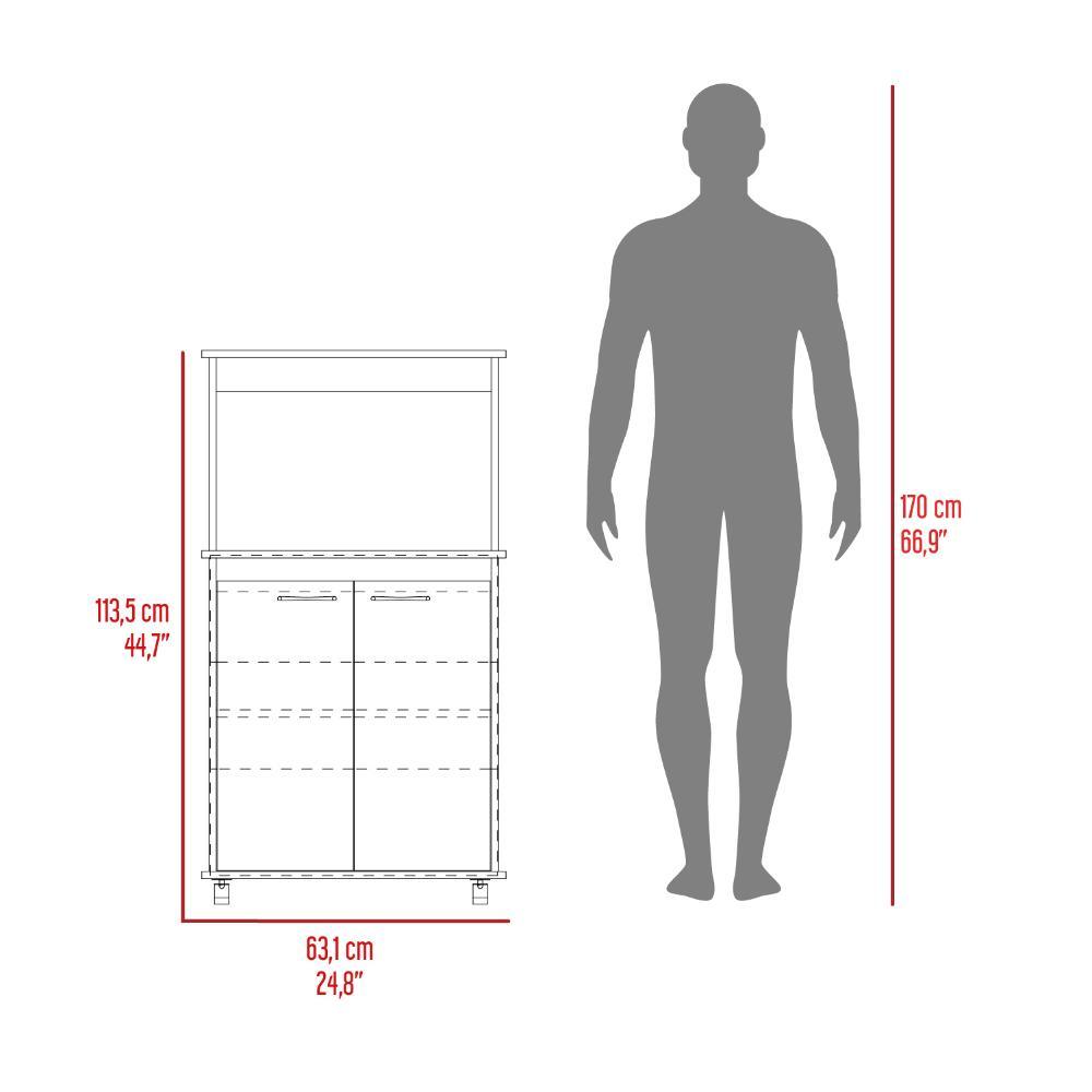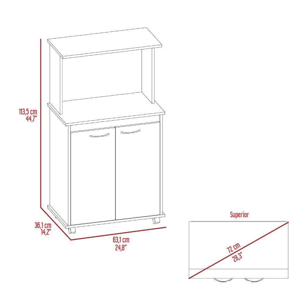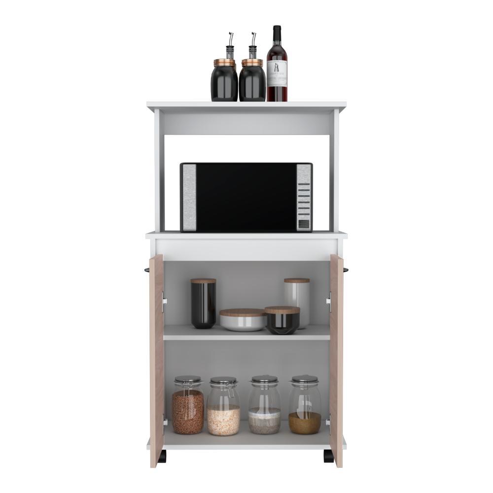 Módulo Microondas Bajo Italia, Blanco Duqueza y Nacar, Con dos puertas abatibles y rodachines