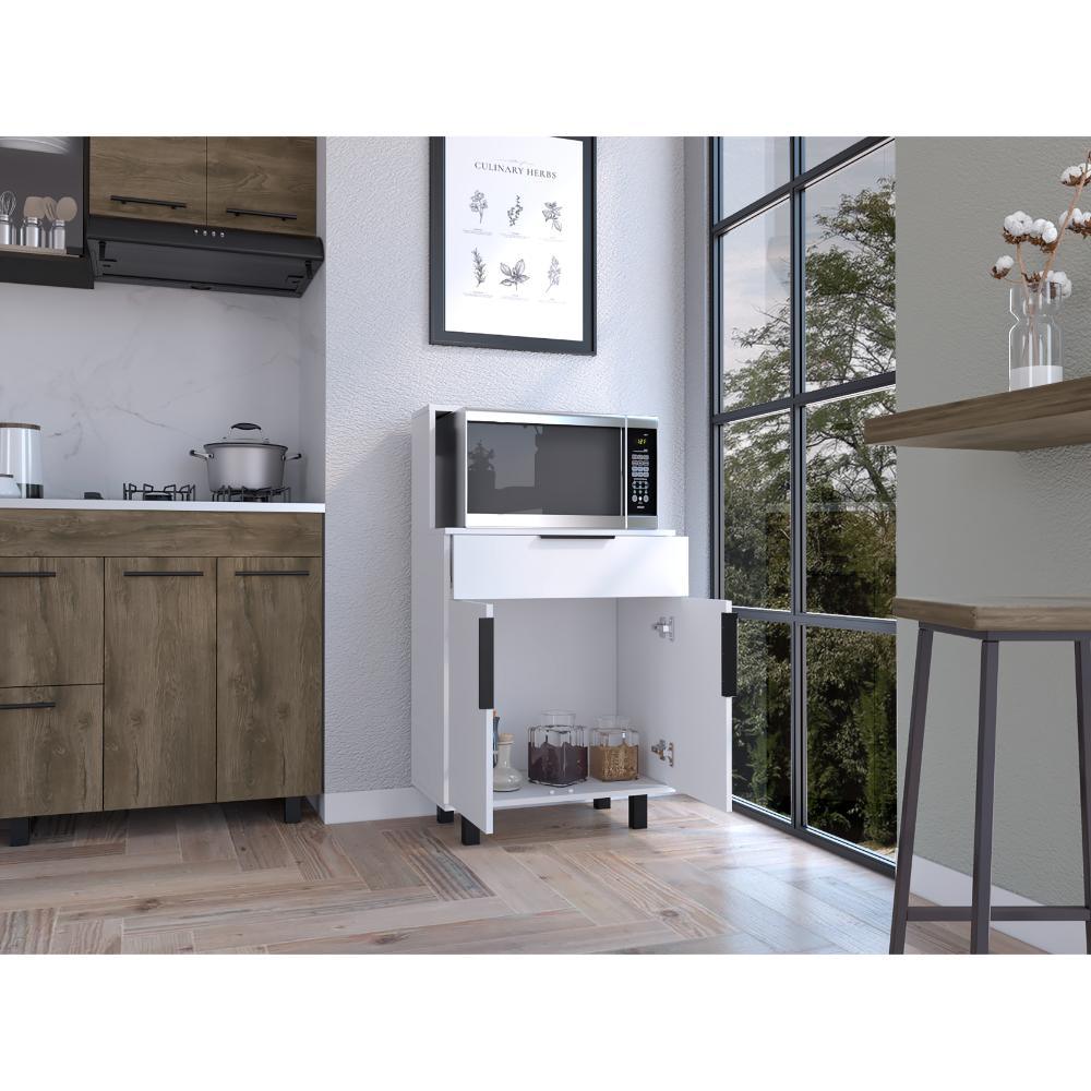 Modulo Microondas Bajo Oshawa, Blanco, con patas y manijas en acero