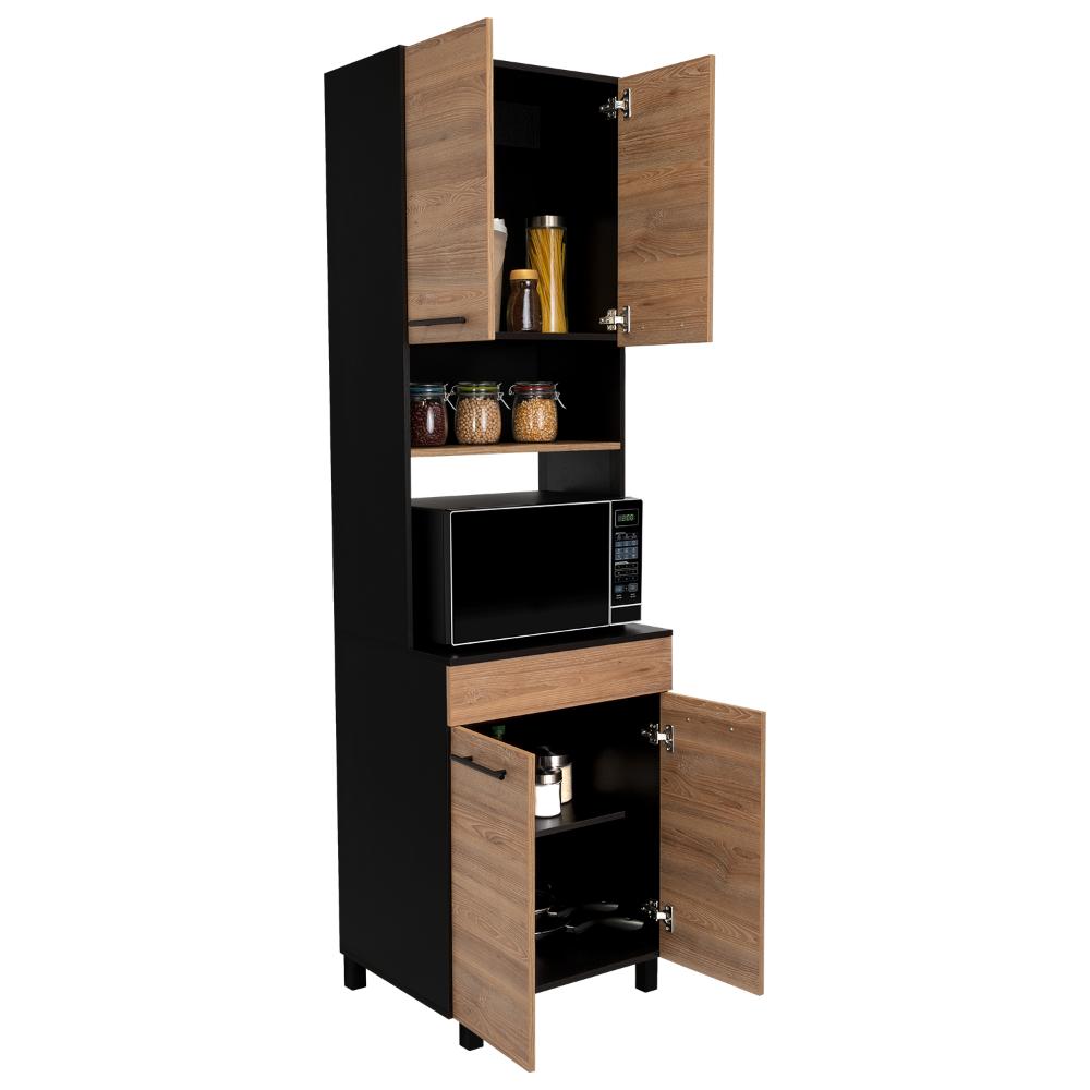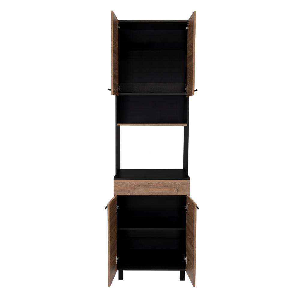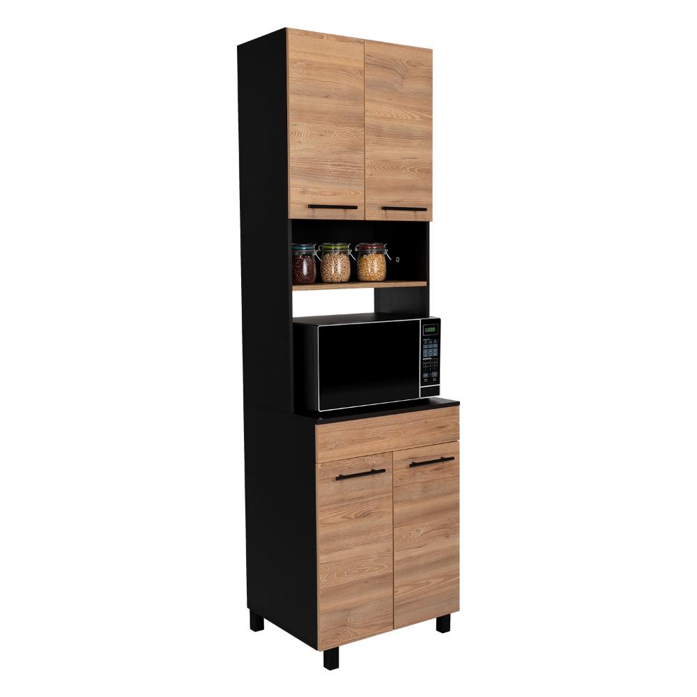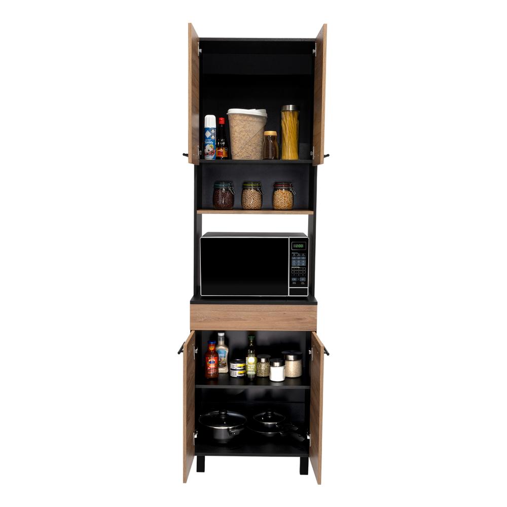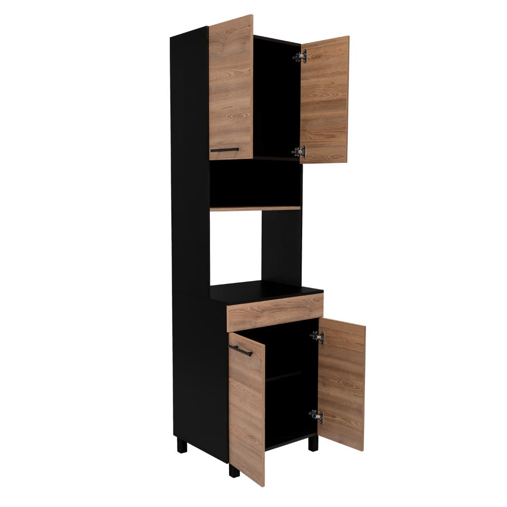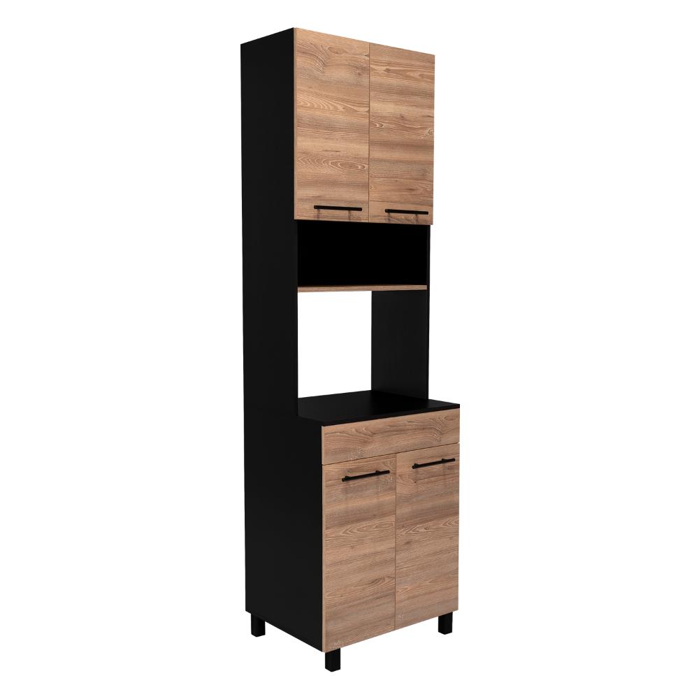 Módulo Microondas Prada, Wengue y Miel, con Rodachinas y Variedad de Entrepaños