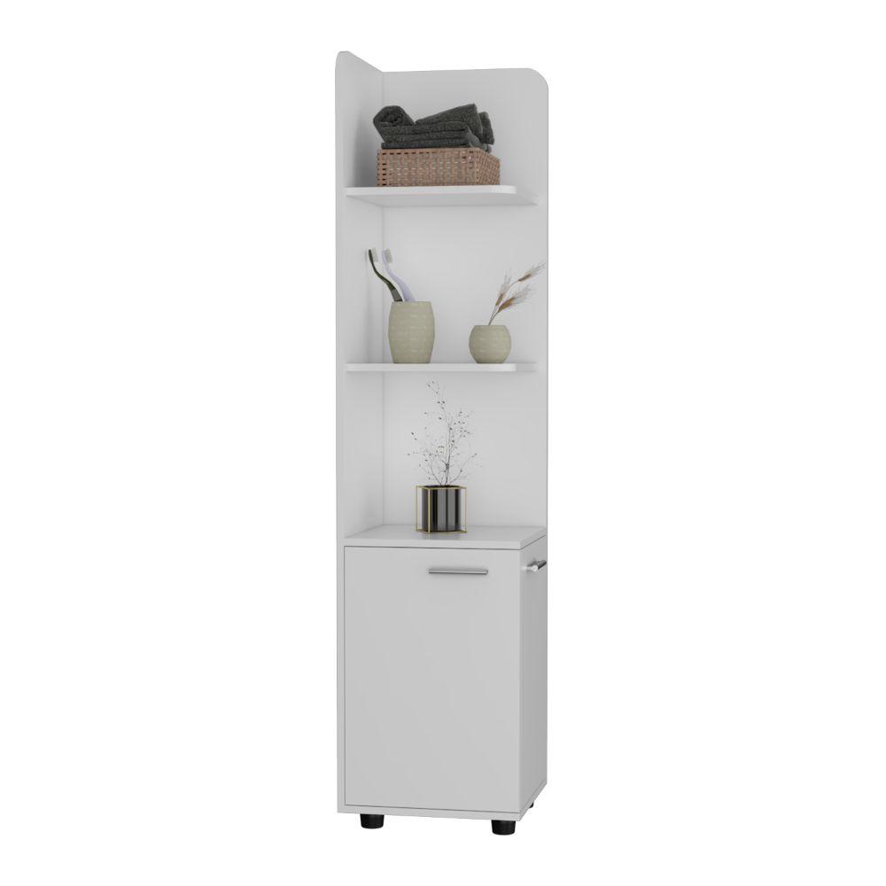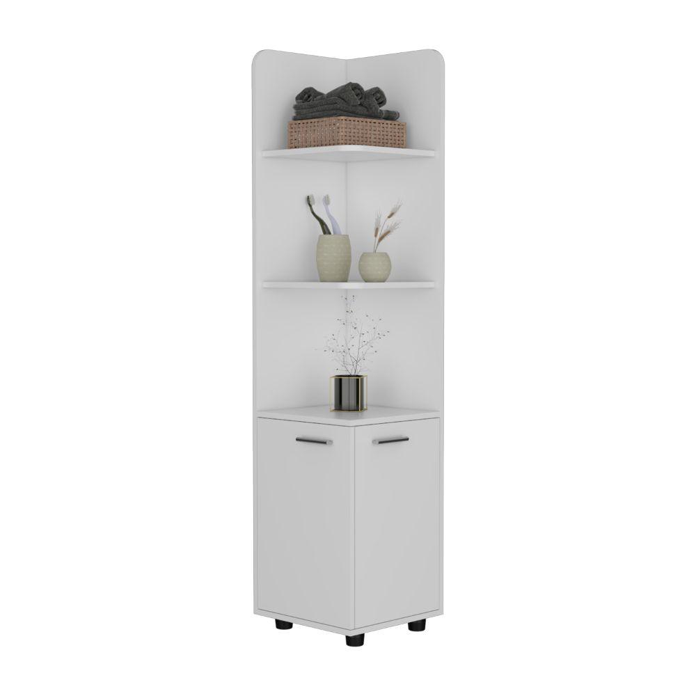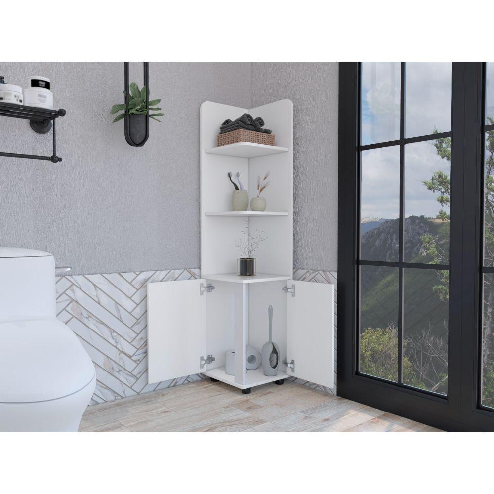 Mueble Esquinero Malibu, Blanco, con dos puertas abatibles y patas metalicas ZF