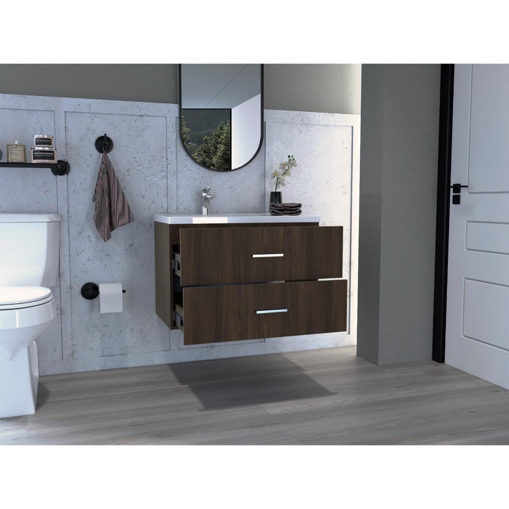 Mueble para Lavamanos Allus, Nogal Europeo, con un cajon y amplios espacio de almacenamiento