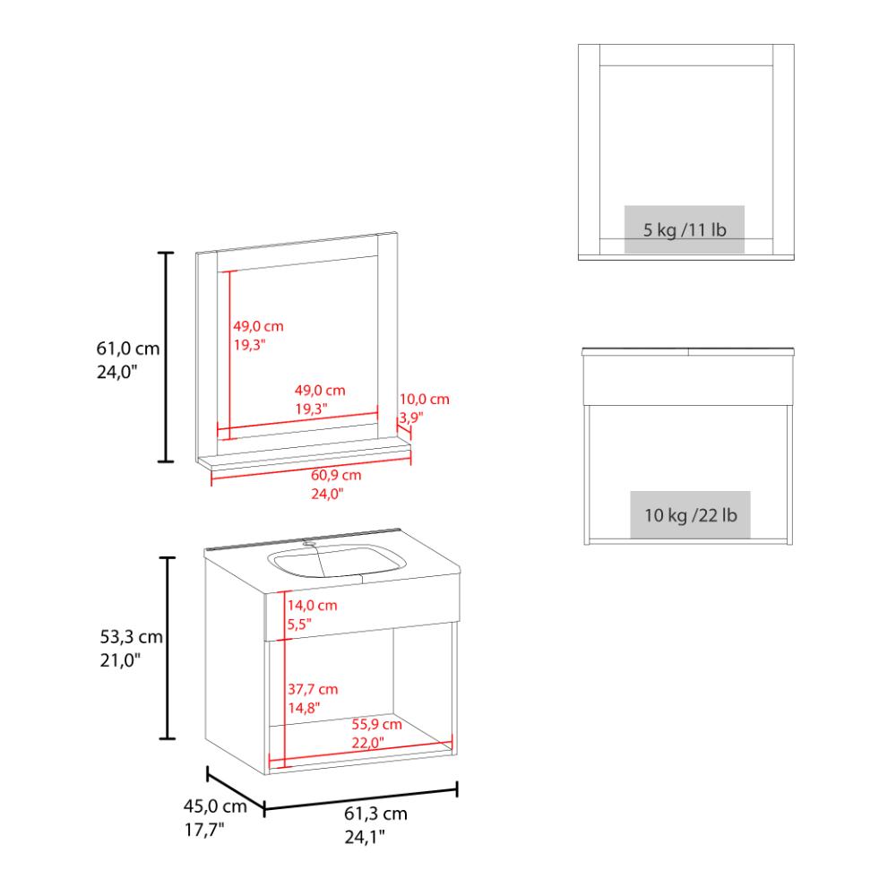 Mueble Para Lavamanos Blake, Wengue, Incluye Lavamanos Praia 60 y Espejo ZF