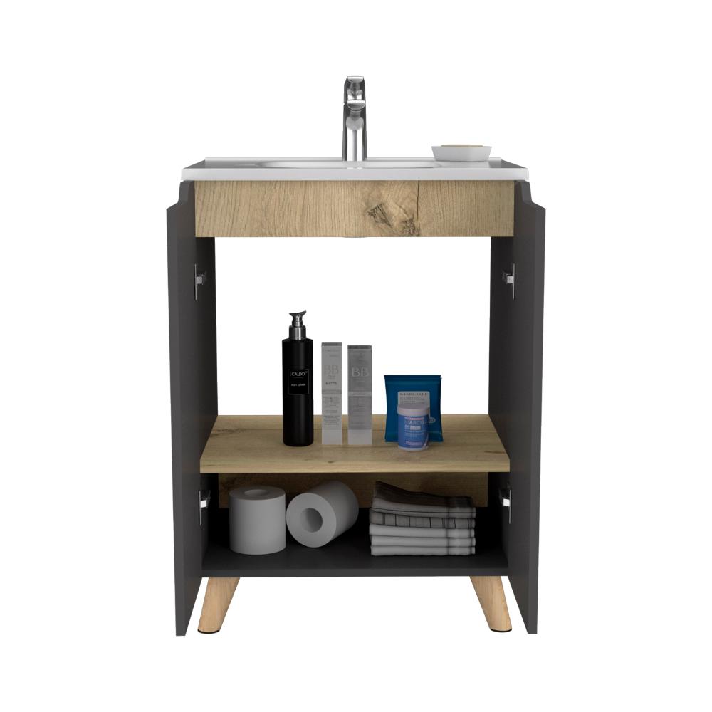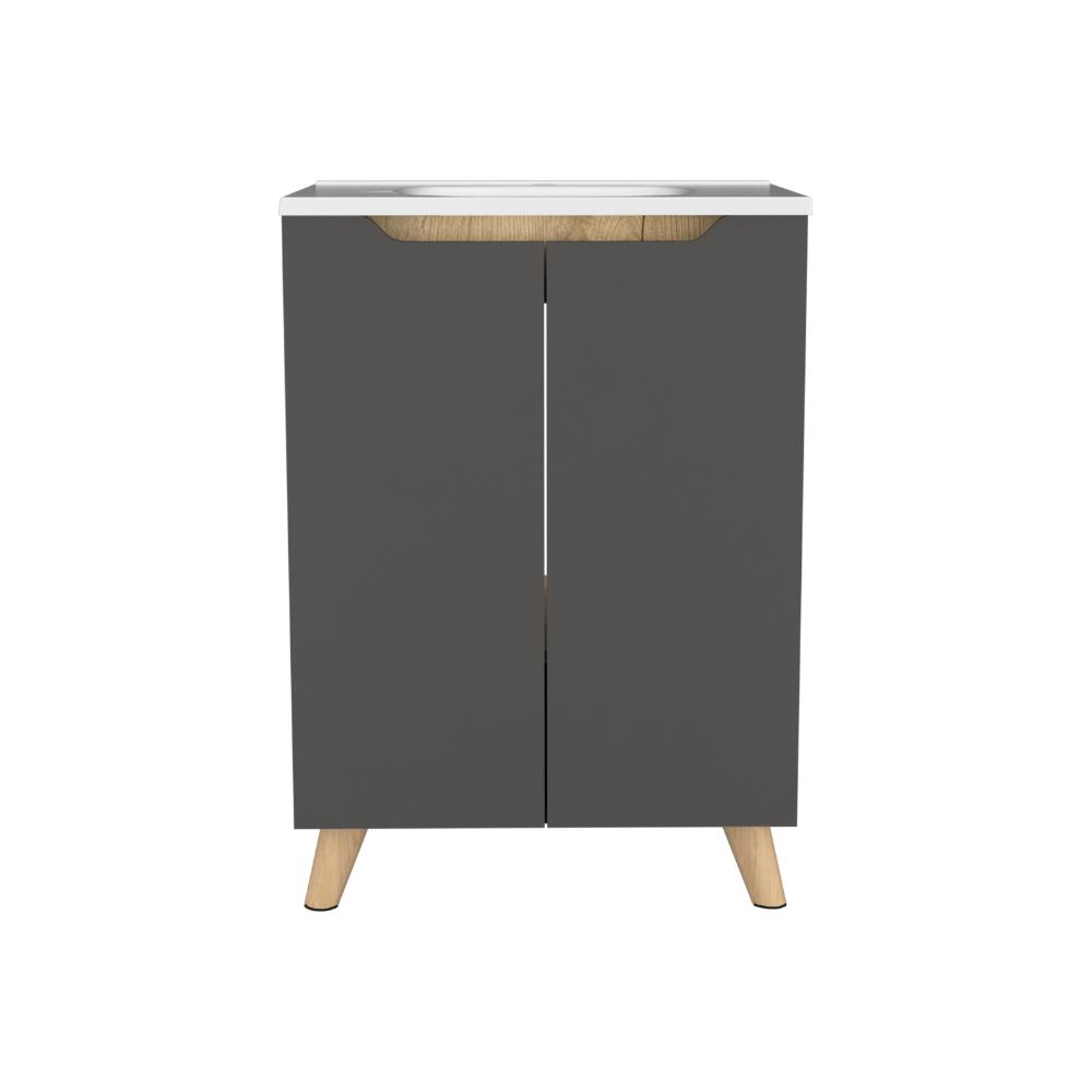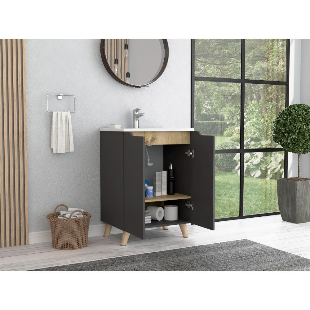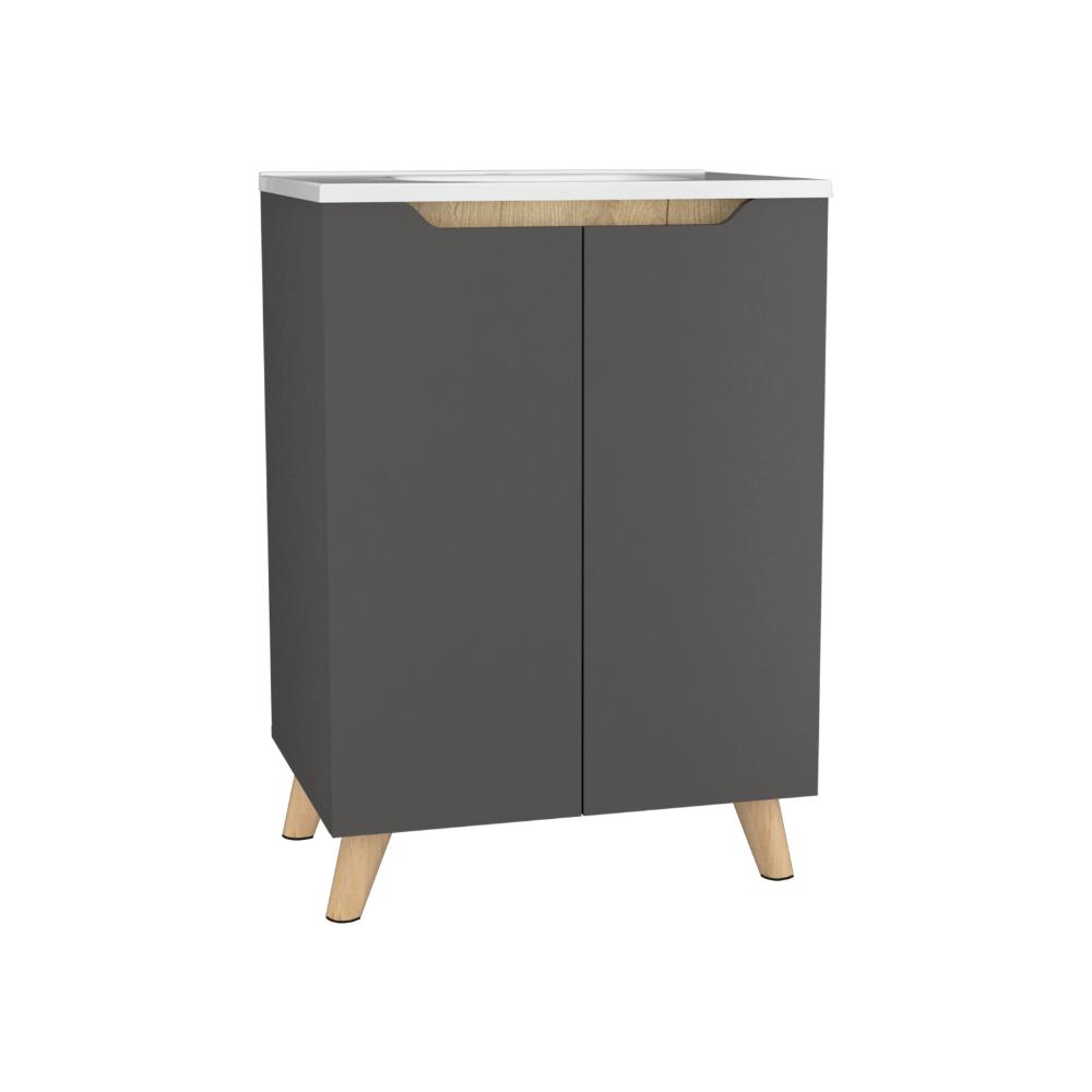 Mueble para Lavamanos Vicent, Plata Oscuro y Café Claro, incluye lavamanos
