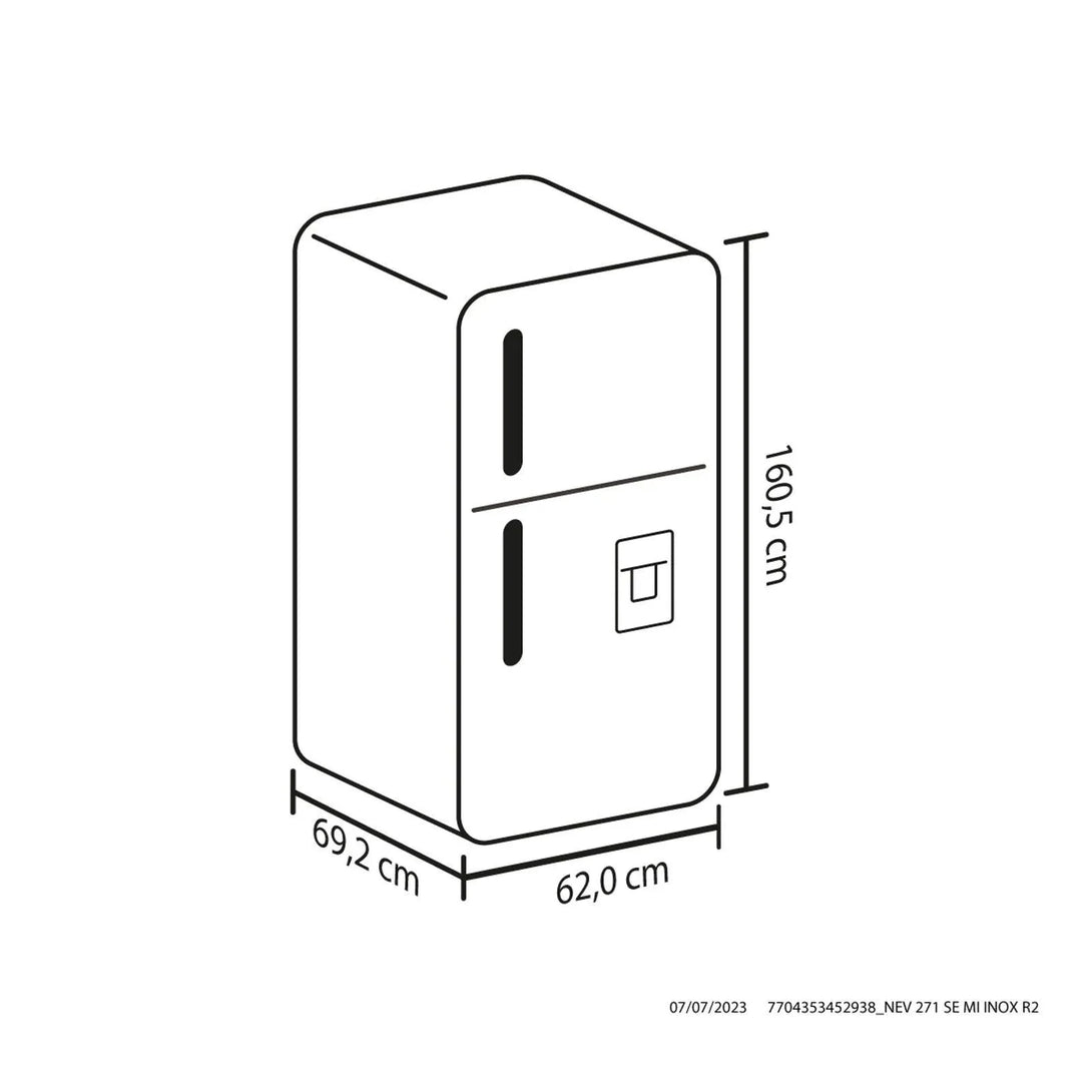 Nevera No Frost de 271 litros Haceb, con elegante acabado inox y manija integrada. Incorpora el exclusivo sistema de conservación Haceb Himalaya® para prolongar la vida útil de tus alimentos, con frío sectorizado y estable en cada zona, corrientes de frío óptimas, control de humedad en bandeja de frutas y verduras, y compartimiento extra-frío. Tendrás gran visibilidad y menos sombras (iluminación tipo LED de gran alcance), ordenar será un placer con su amplio espacio interior con distribución modular.