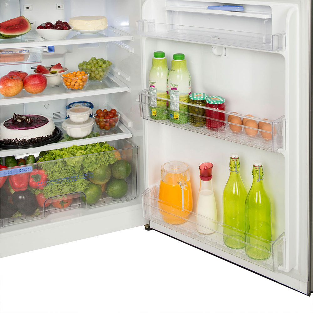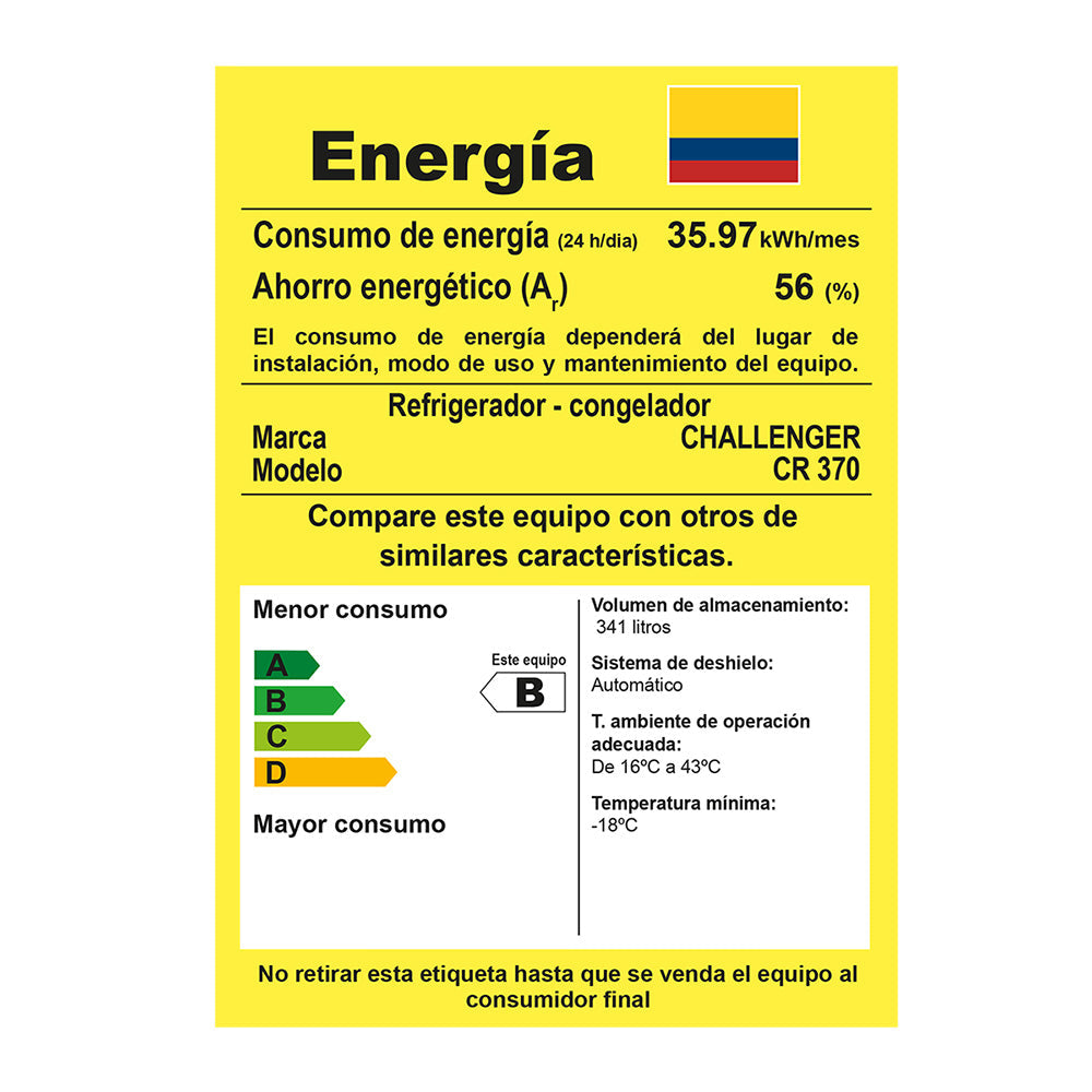 Con el avanzado termostato electrónico y display tipo touch, toma el control total de la temperatura de tu congelador sin siquiera abrir la puerta. Desde el exterior, ajusta la intensidad en tres niveles para adaptarse a tus necesidades. / Di adiós a la molesta escarcha con nuestro sistema No Frost. Mantén tus alimentos impecables y libres de hielo, mientras disfrutas de un espacio organizado y limpio en tu nevera. ¡Sin esfuerzo, sin complicaciones! / Con su avanzado termostato electrónico con display tipo touch, tomar el control de la temperatura nunca ha sido tan fácil. Desde el exterior de la nevera, podrás ajustar el nivel de intensidad del congelador en tres configuraciones diferentes. / Nuestro empaque magnético removible es una verdadera maravilla. Gracias a su diseño inteligente, el empaque se puede retirar de manera sencilla para acceder a todas las áreas interiores. / Completamente libre de CFC (clorofluorocarbonos), lo que significa que no contribuye al agotamiento de la capa de ozono ni al calentamiento global. Con este enfoque ecológico, puedes disfrutar de una refrigeración de alta calidad y, al mismo tiempo, contribuir a la preservación de nuestro planeta. / La nevera CR 370 también destaca por su diseño elegante y moderno que complementará a la perfección cualquier estilo de cocina. Sus líneas sofisticadas y acabados de alta calidad harán que tu cocina brille con estilo y distinción.