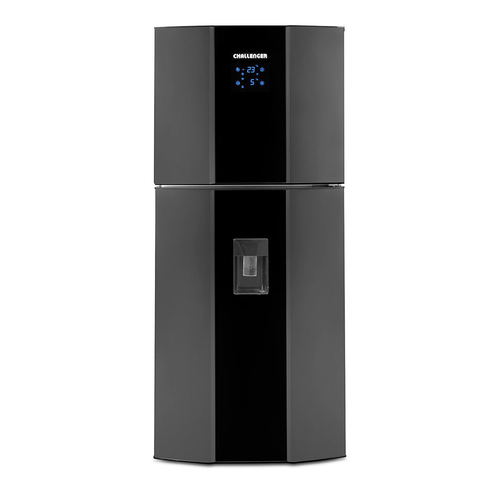 Con el avanzado termostato electrónico y display tipo touch, toma el control total de la temperatura de tu congelador sin siquiera abrir la puerta. Desde el exterior, ajusta la intensidad en tres niveles para adaptarse a tus necesidades. / Di adiós a la molesta escarcha con nuestro sistema No Frost. Mantén tus alimentos impecables y libres de hielo, mientras disfrutas de un espacio organizado y limpio en tu nevera. ¡Sin esfuerzo, sin complicaciones! / Con nuestro dispensador de agua integrado, solo tendrás que presionar un botón para disfrutar de una hidratación instantánea. Olvídate de abrir la nevera cada vez que necesitas una bebida refrescante. / La nevera CR 390 también destaca por su diseño elegante y moderno que complementará a la perfección cualquier estilo de cocina. Sus líneas sofisticadas y acabados de alta calidad harán que tu cocina brille con estilo y distinción.