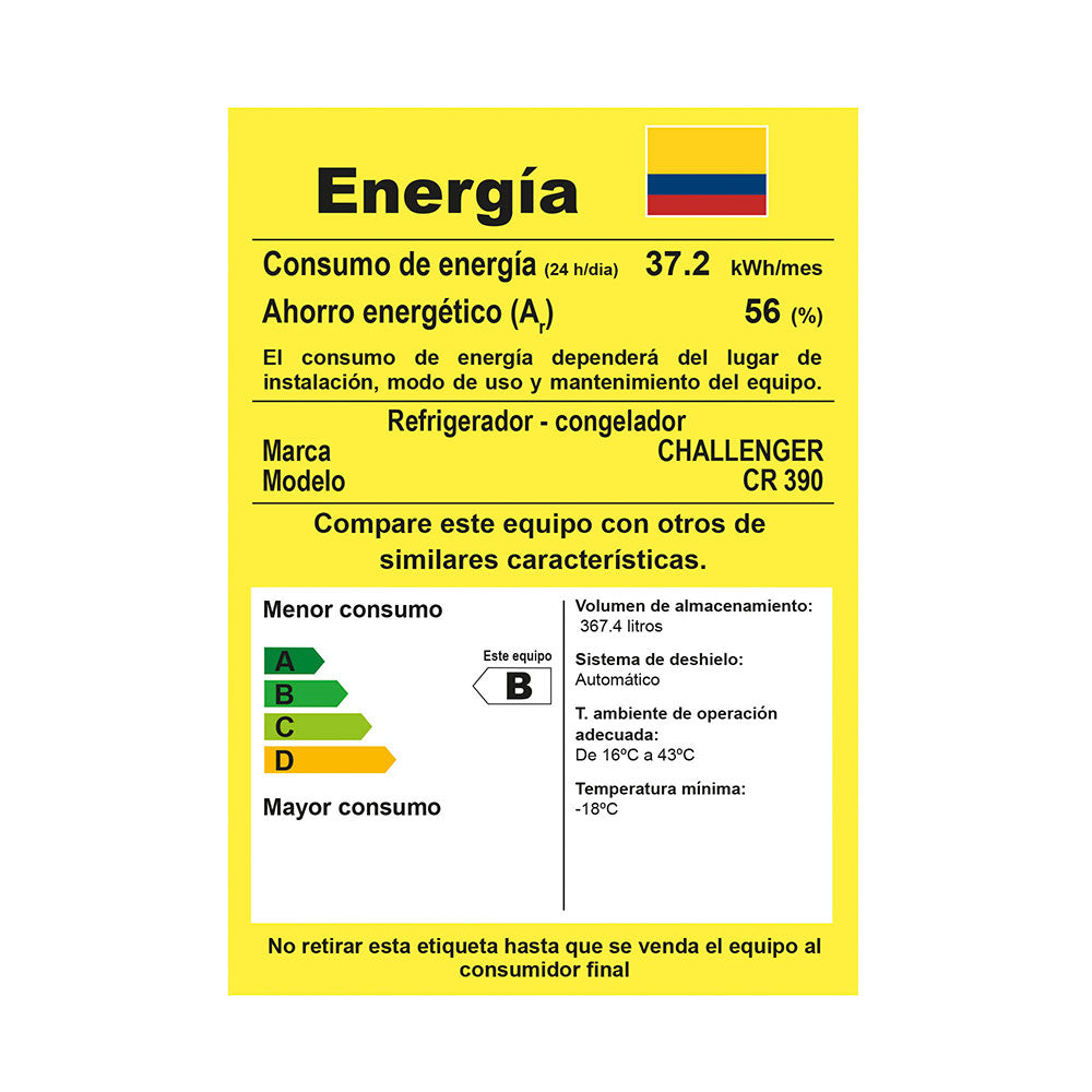 Línea: Black Series / Tipo de Aparato : Refrigerador sin escarcha (No Frost) / Volumen Almacenamiento : 367.4 L / Clase : Tropical / Acabados : Titanium brillante / Clasificación energética: B / Tensión / Frecuencia : 115 V / 60 Hz / Consumo de energía : 1.240 kwh/día - 37.2 kwh/mes / Corriente Nominal : 0,82 A / Potencia Nominal : 90,0W / Refrigerante : R600a