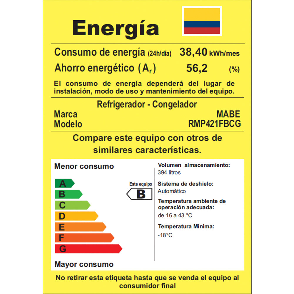 | CAPACIDAD LITROS BRUTOS: | 421 |