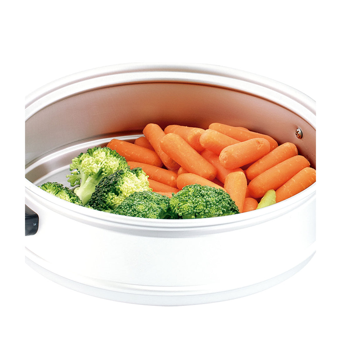 Incluye cuchara, taza medidora y vaporera en aluminio.
