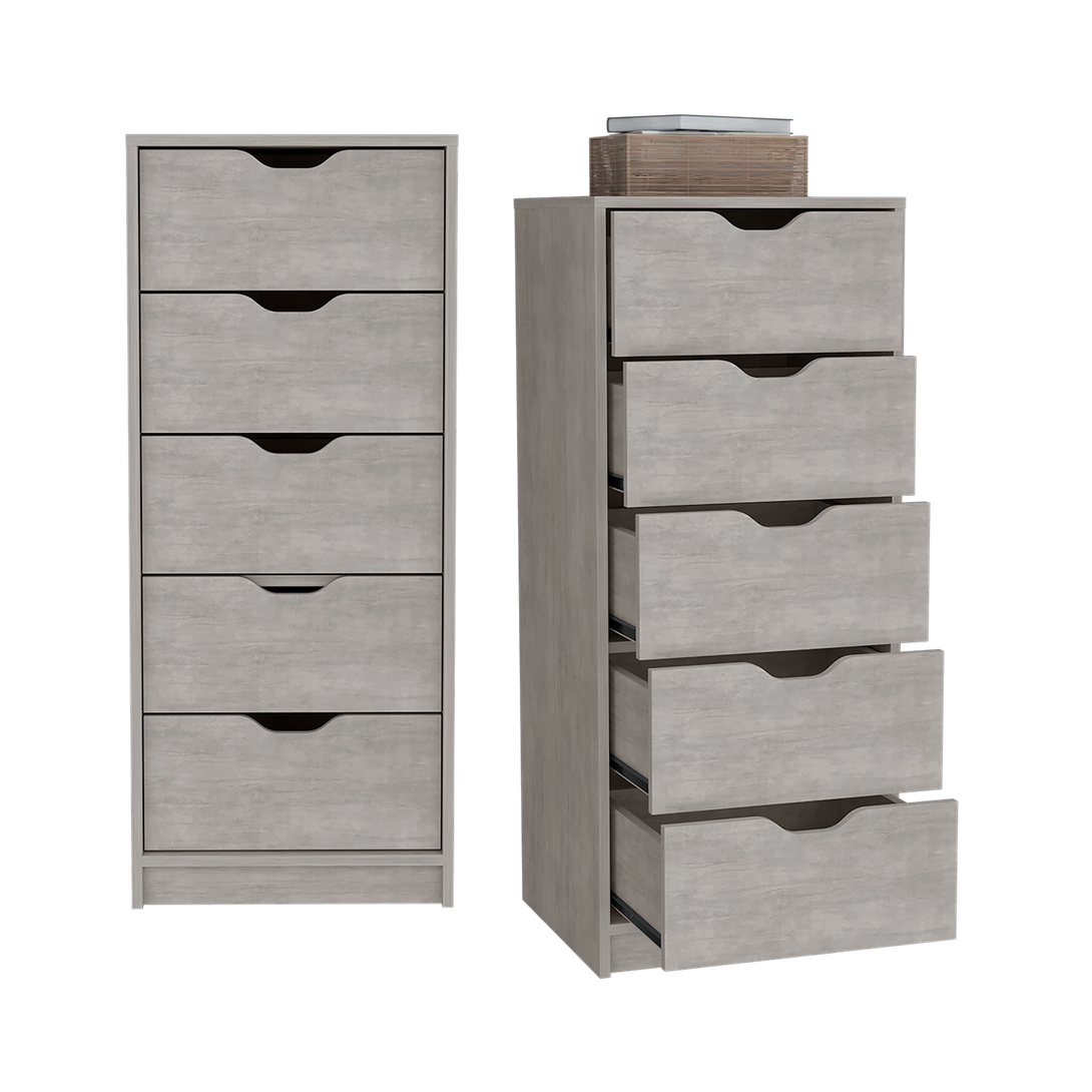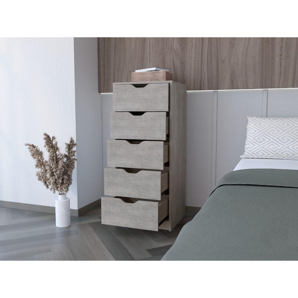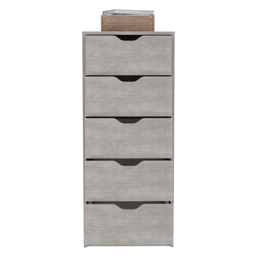 Organizador, con cinco cajones, diseño moderno con combinacion de colores.